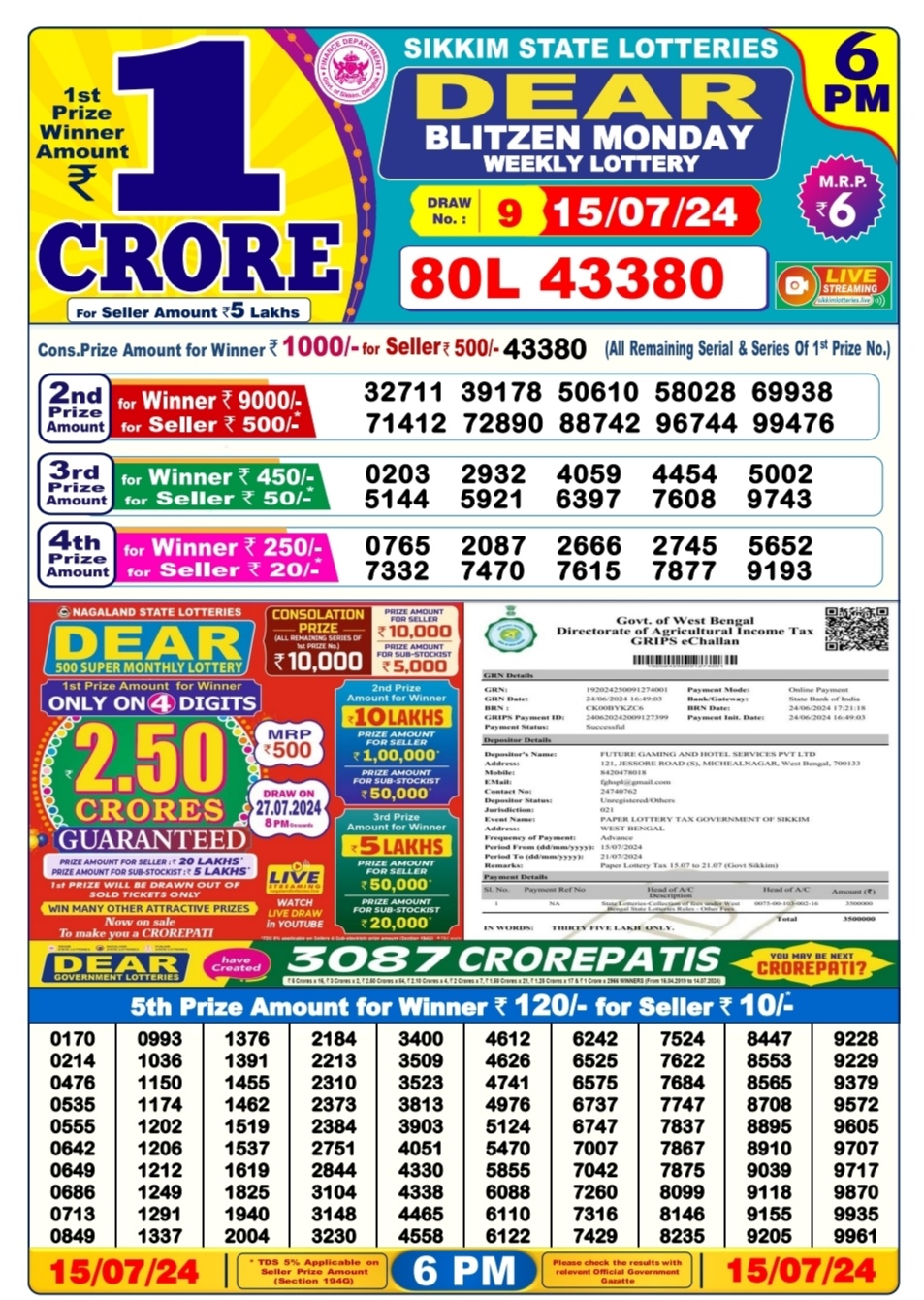 Dear blitzen monday weekly lottery 6pm result 15/07/24 15-07-2024 Leave a Comment on Dear blitzen monday weekly lottery 6pm result 15/07/24