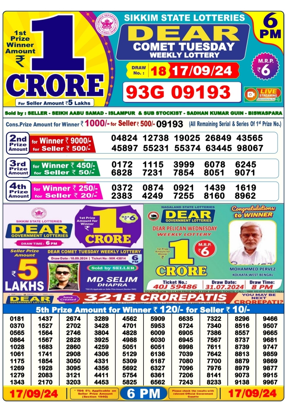 Dear comet tuesday weekly lottery 6pm result 17/09/24 17-09-2024 Leave a Comment on Dear comet tuesday weekly lottery 6pm result 17/09/24