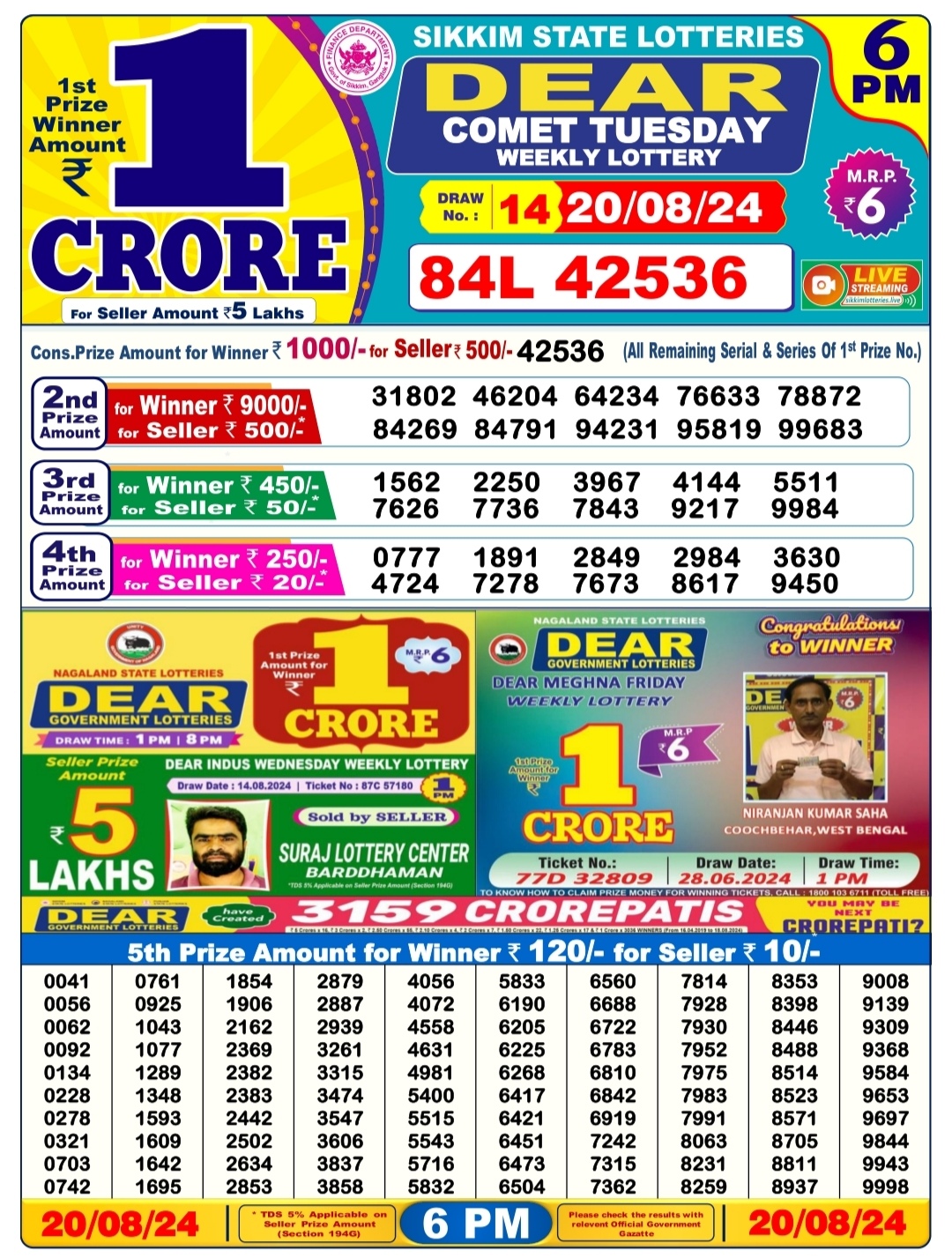 Dear comet tuesday weekly lottery 6pm result 20/08/24 20-08-2024 Leave a Comment on Dear comet tuesday weekly lottery 6pm result 20/08/24 Posted in Results