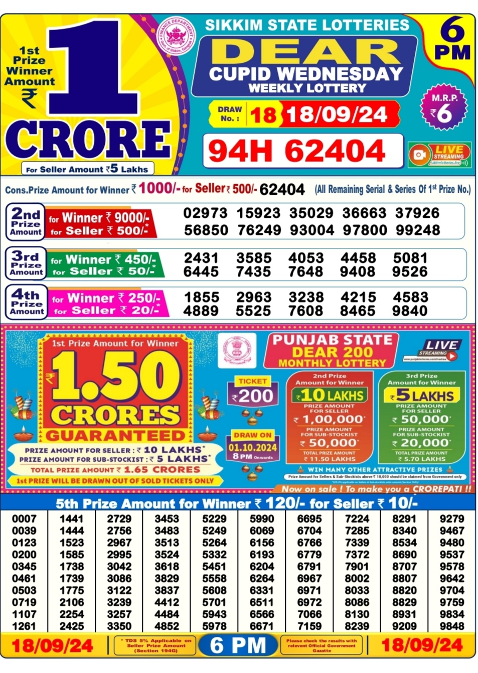 Dear Cupid Wednesday weekly lottery 6pm result 18/09/24 18-09-2024 Leave a Comment on Dear Cupid Wednesday weekly lottery 6pm result 18/09/24