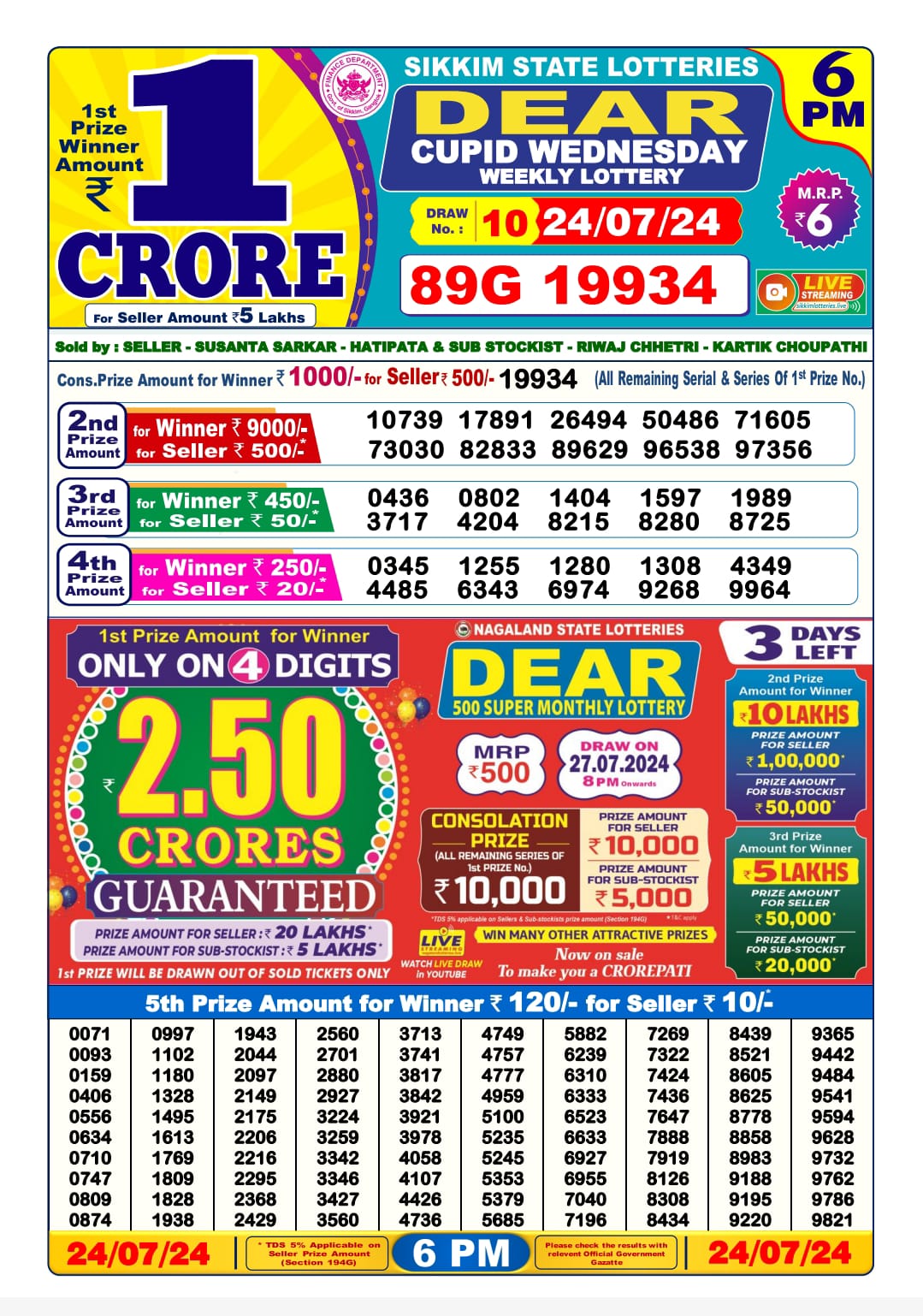 Dear Cupid Wednesday weekly lottery 6pm result 24/07/24 24-07-2024 Leave a Comment on Dear Cupid Wednesday weekly lottery 6pm result 24/07/24