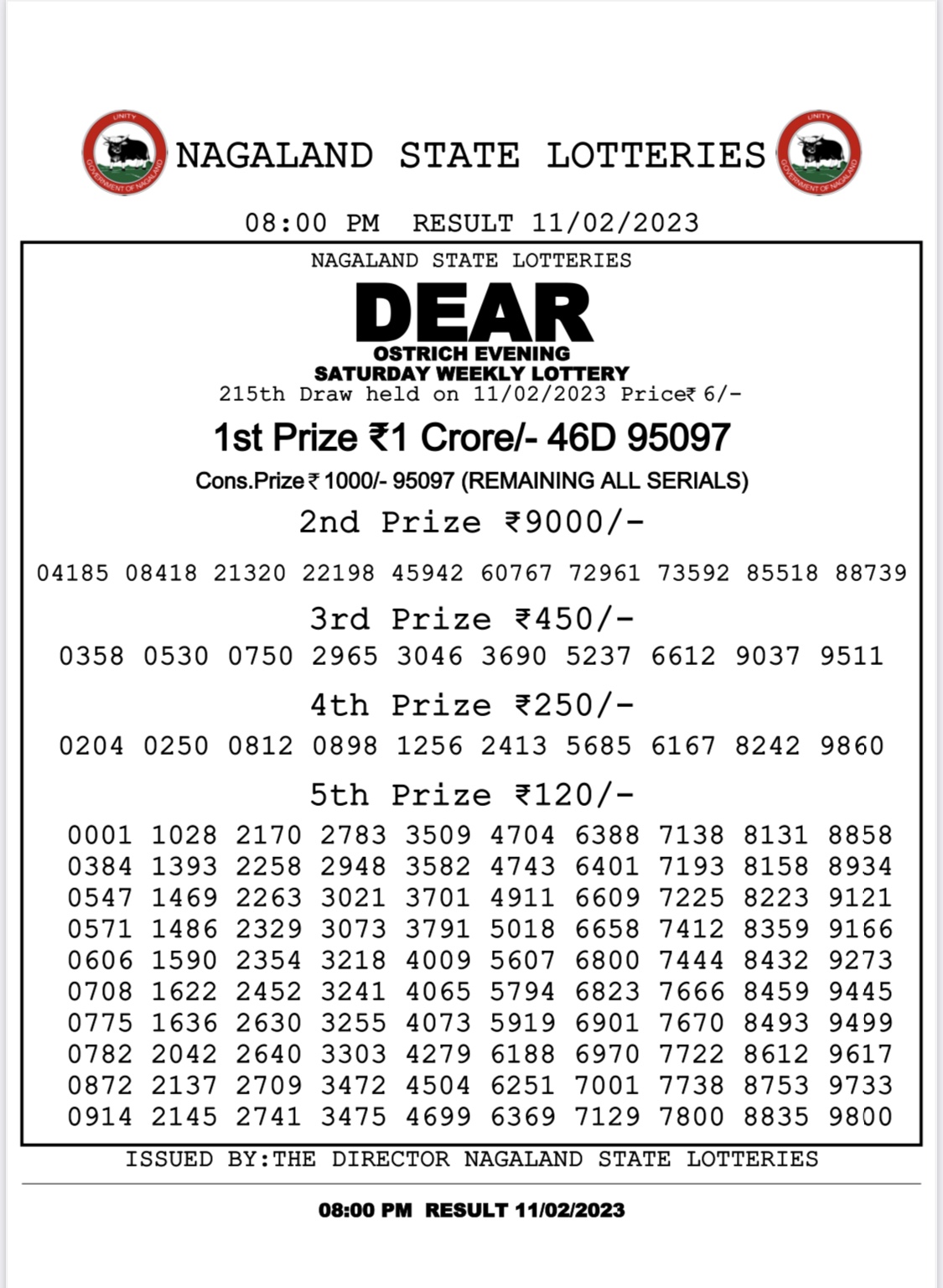 Dear Daily Lottery Result 11feb 2023 8PM 11-02-2023 Leave a Comment on Dear Daily Lottery Result 11feb 2023 8PM