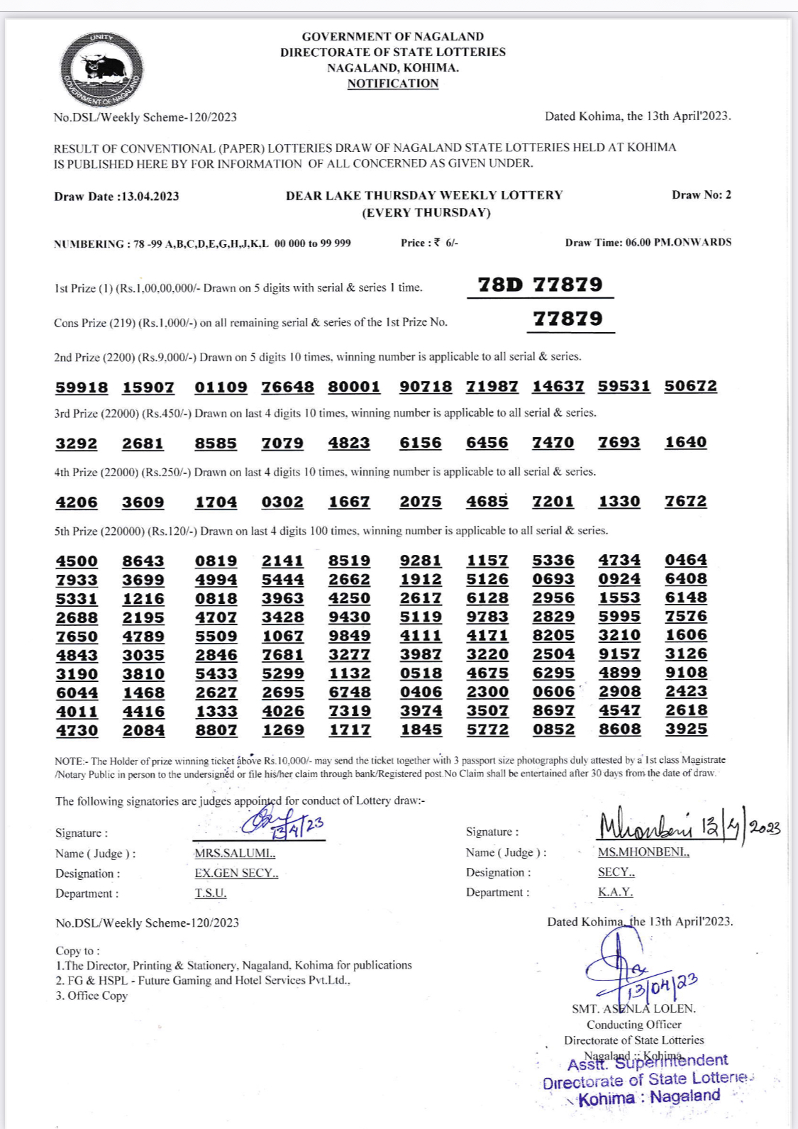 Dear daily lottery result 13 April 2023 6pm 13-04-2023 Leave a Comment on Dear daily lottery result 13 April 2023 6pm