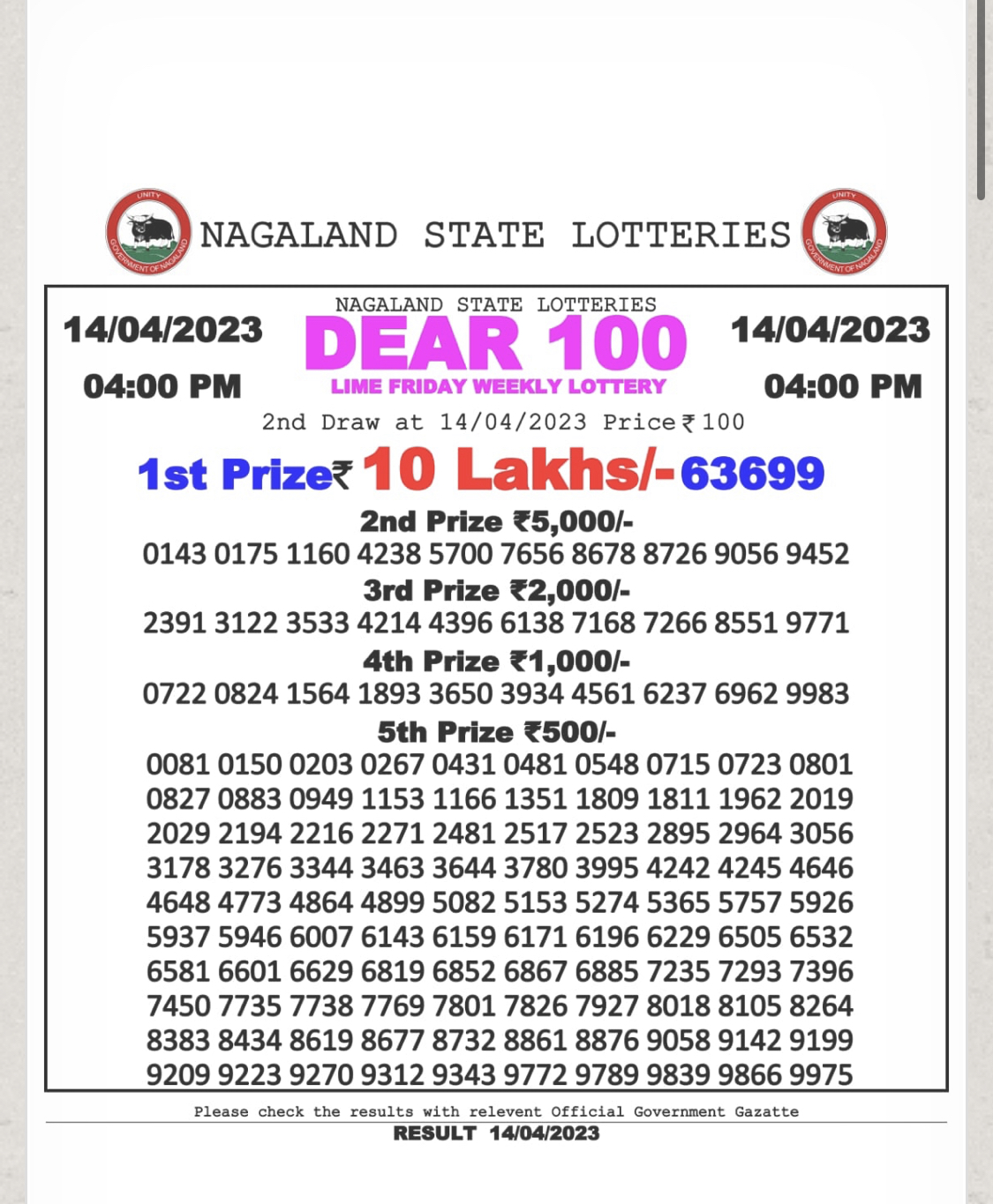 Dear daily lottery result 14 April 2023 4pm 14-04-2023 Leave a Comment on Dear daily lottery result 14 April 2023 4pm