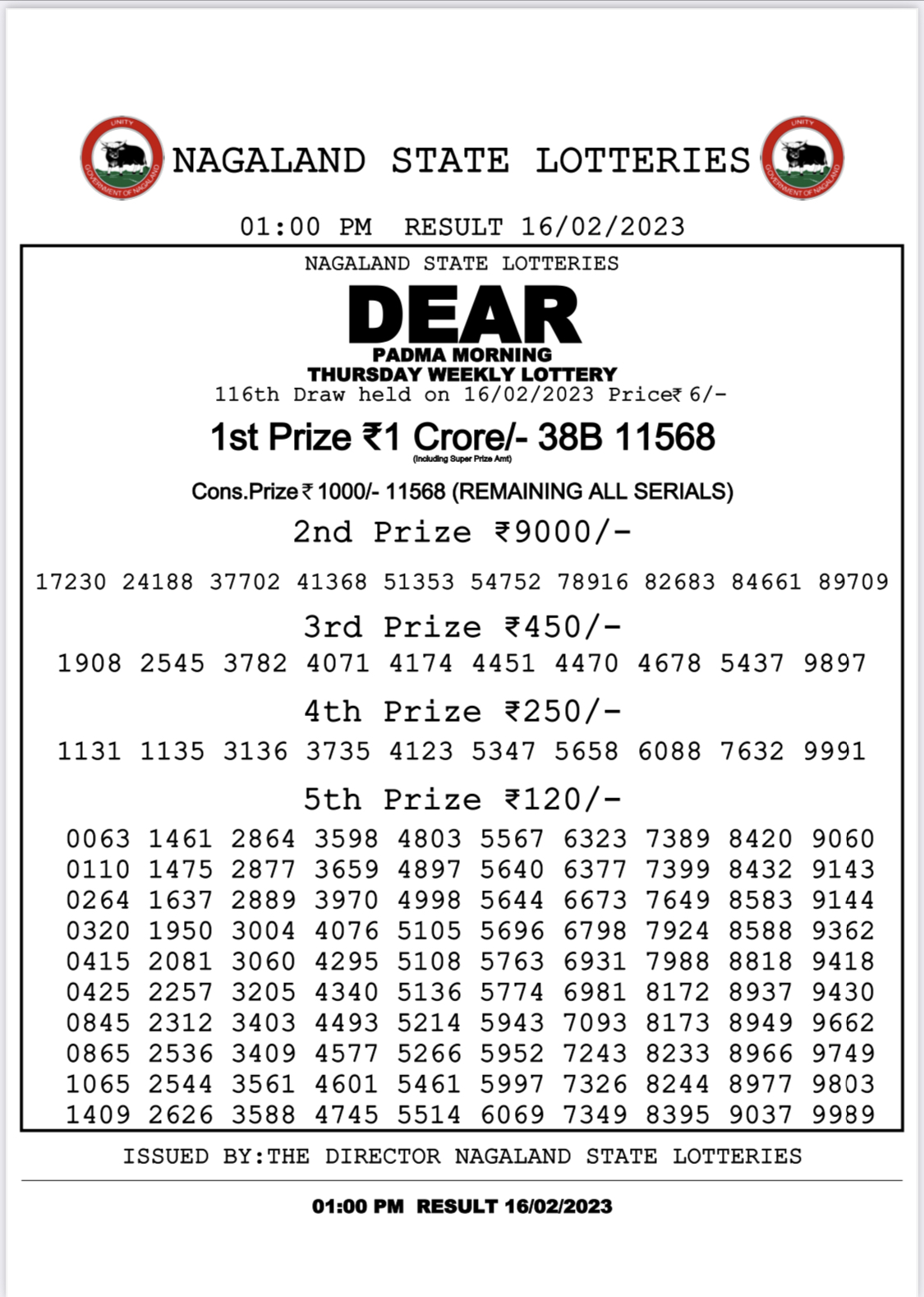Dear Daily Lottery Result 16feb 2023 1pm 16-02-2023 Leave a Comment on Dear Daily Lottery Result 16feb 2023 1pm