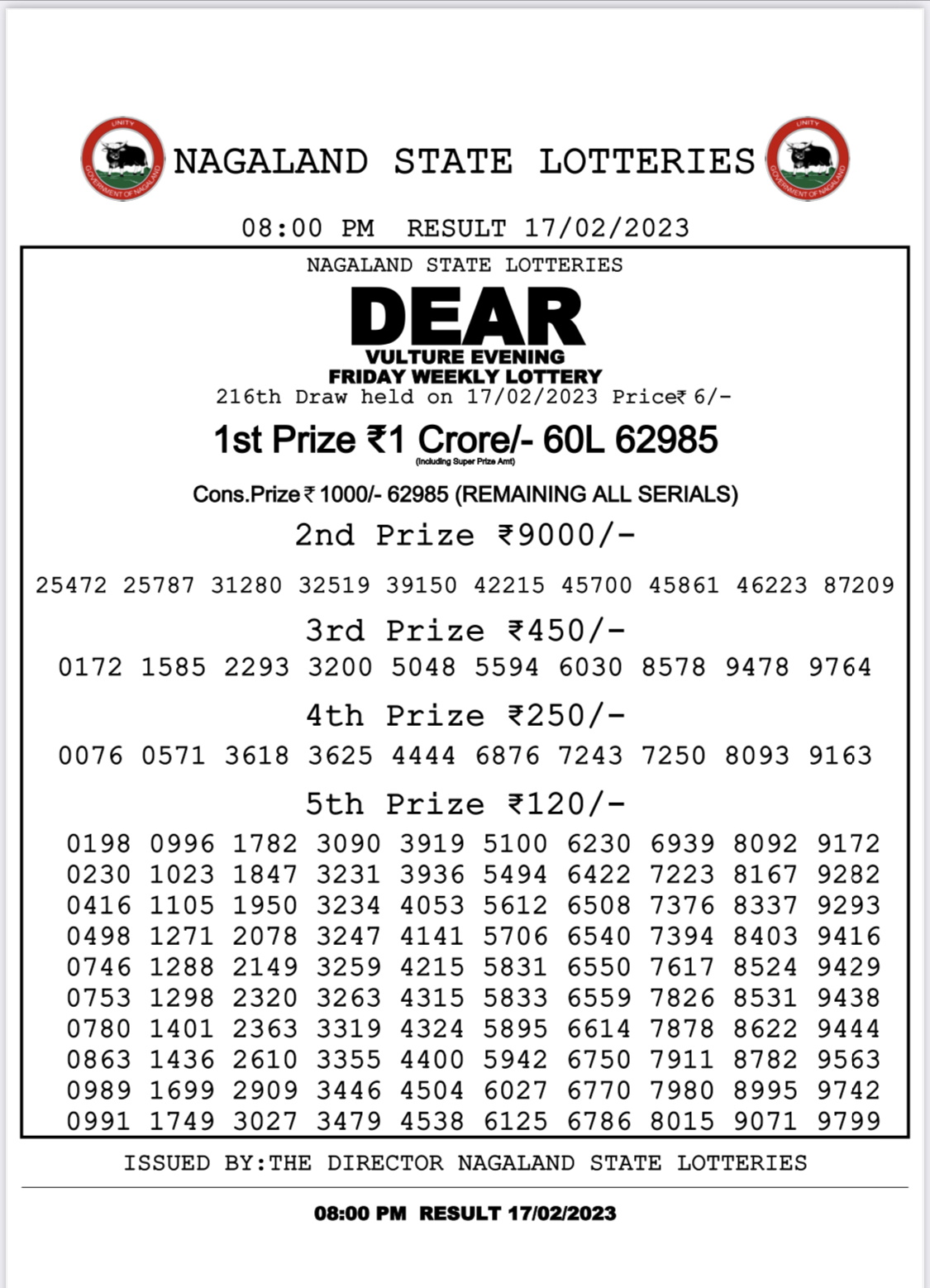 Dear daily lottery result 17 Feb 2023 8pm 17-02-2023 Leave a Comment on Dear daily lottery result 17 Feb 2023 8pm