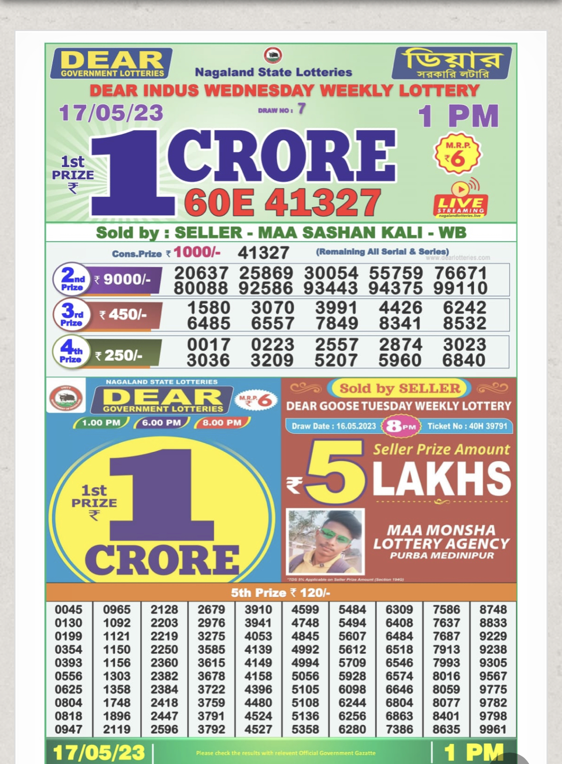 Dear daily lottery result 17 may 2023 1 pm 17-05-2023 Leave a Comment on Dear daily lottery result 17 may 2023 1 pm