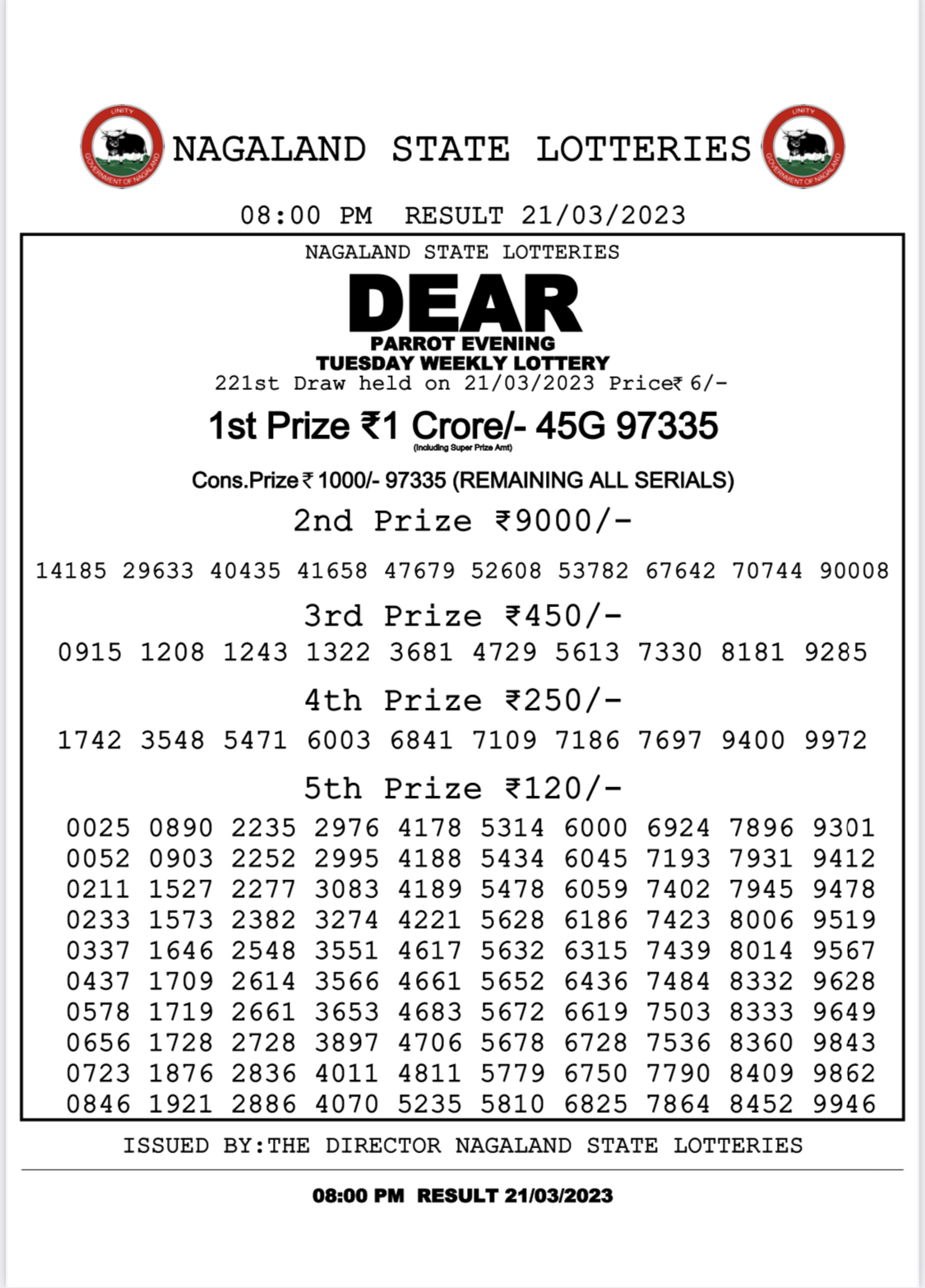Dear daily lottery result 21 march 2023 8pm 21-03-2023 Leave a Comment on Dear daily lottery result 21 march 2023 8pm