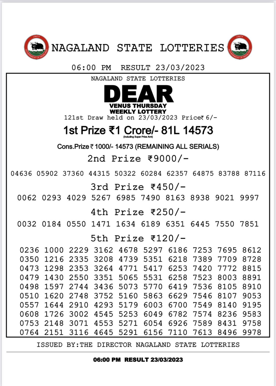 Dear daily lottery result 23 march 2023 6 pm 23-03-2023 Leave a Comment on Dear daily lottery result 23 march 2023 6 pm