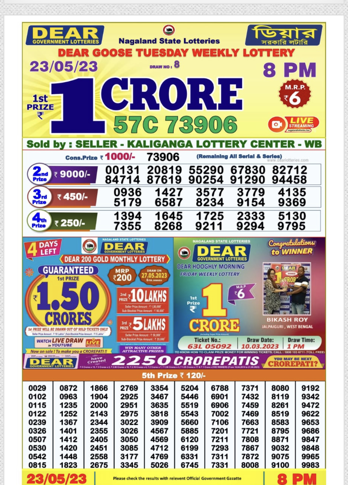 Dear daily lottery result 23 may 2023 8 pm 23-05-2023 Leave a Comment on Dear daily lottery result 23 may 2023 8 pm