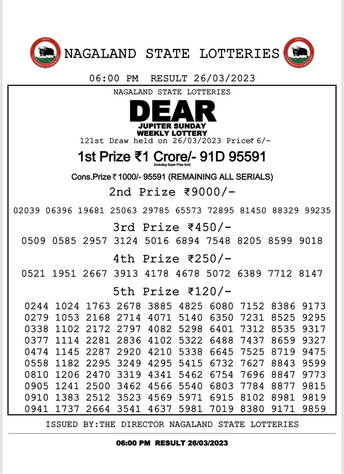 Dear daily lottery result 26 march 2023 6pm 26-03-2023 Leave a Comment on Dear daily lottery result 26 march 2023 6pm
