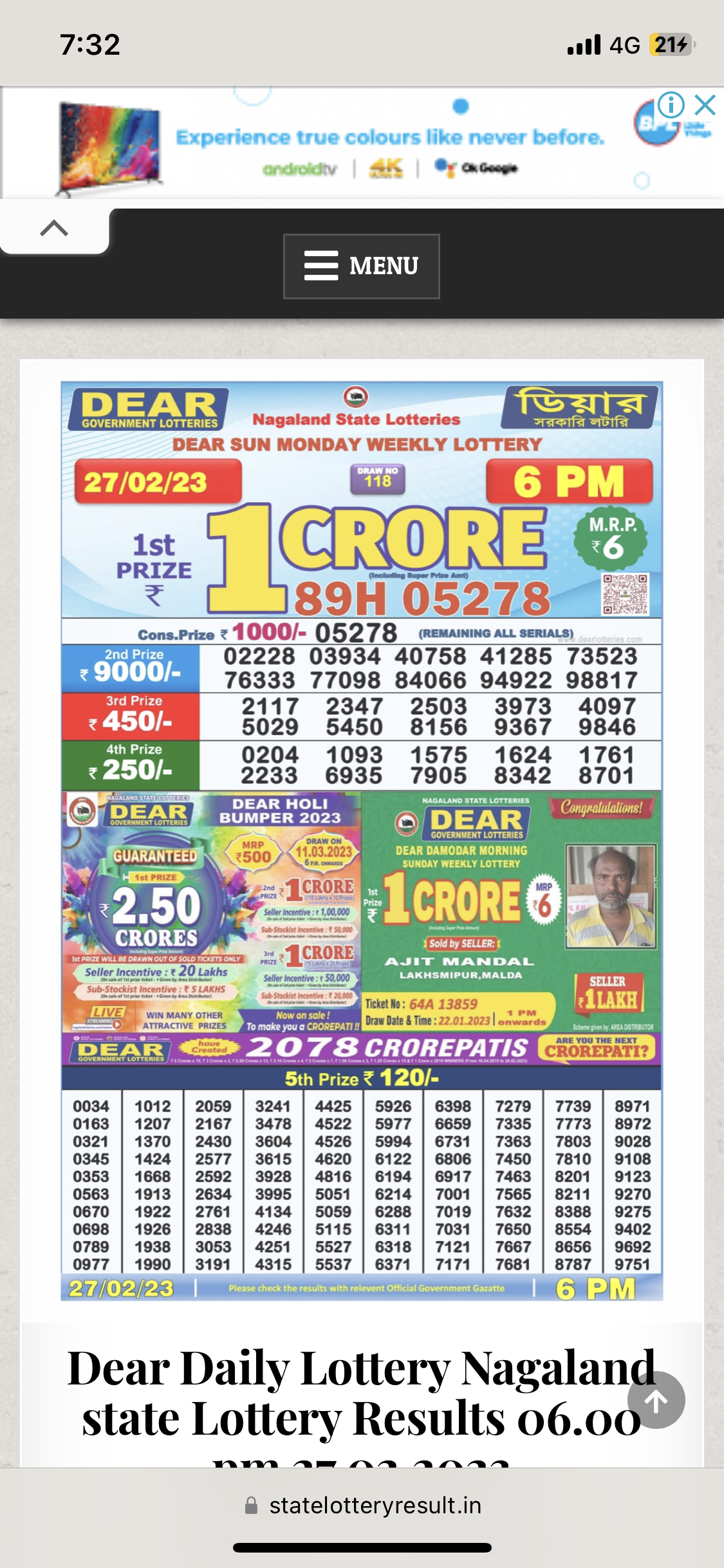Dear daily lottery result 27 Feb 2023 6pm 27-02-2023 Leave a Comment on Dear daily lottery result 27 Feb 2023 6pm