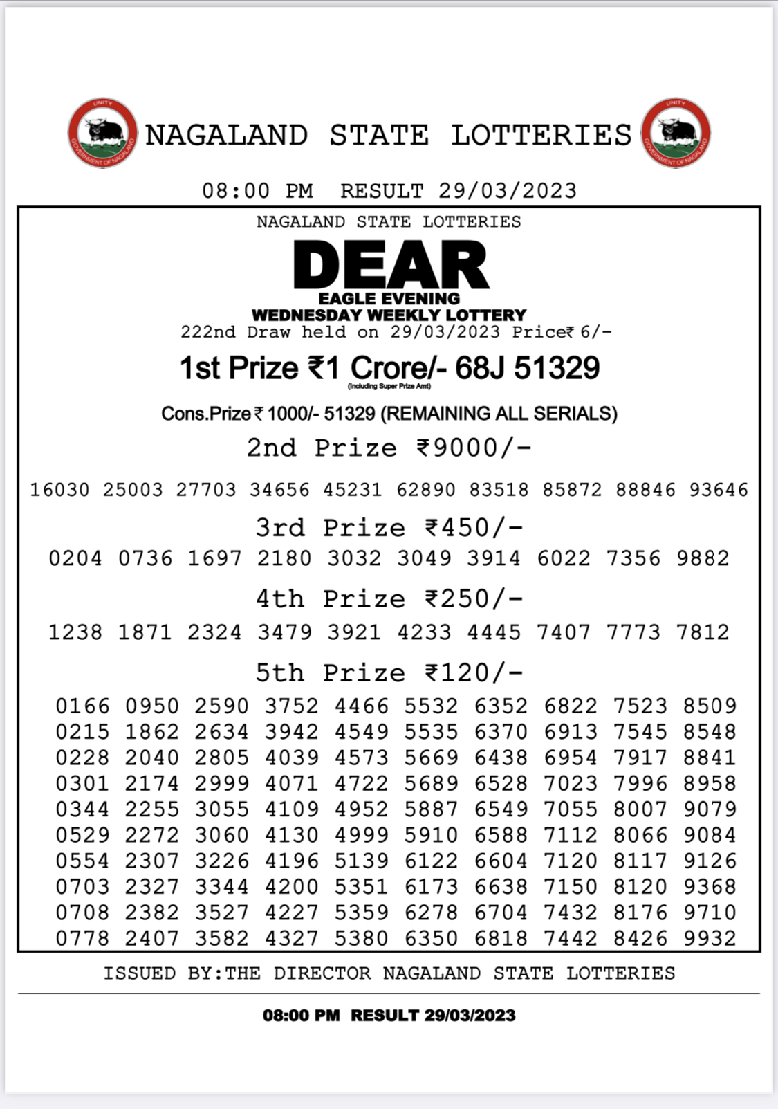 Dear daily lottery result 29 march 2023 8pm 29-03-2023 Leave a Comment on Dear daily lottery result 29 march 2023 8pm