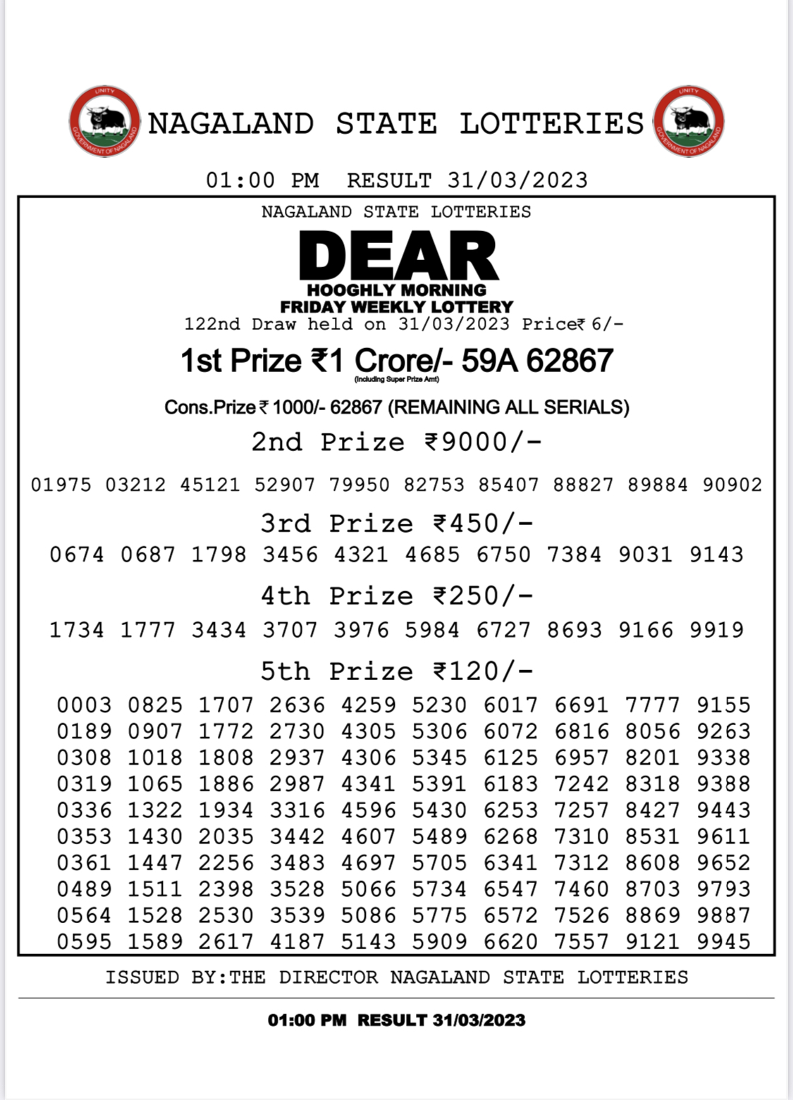 Dear daily lottery result 31 march 2023 1 pm 31-03-2023 Leave a Comment on Dear daily lottery result 31 march 2023 1 pm