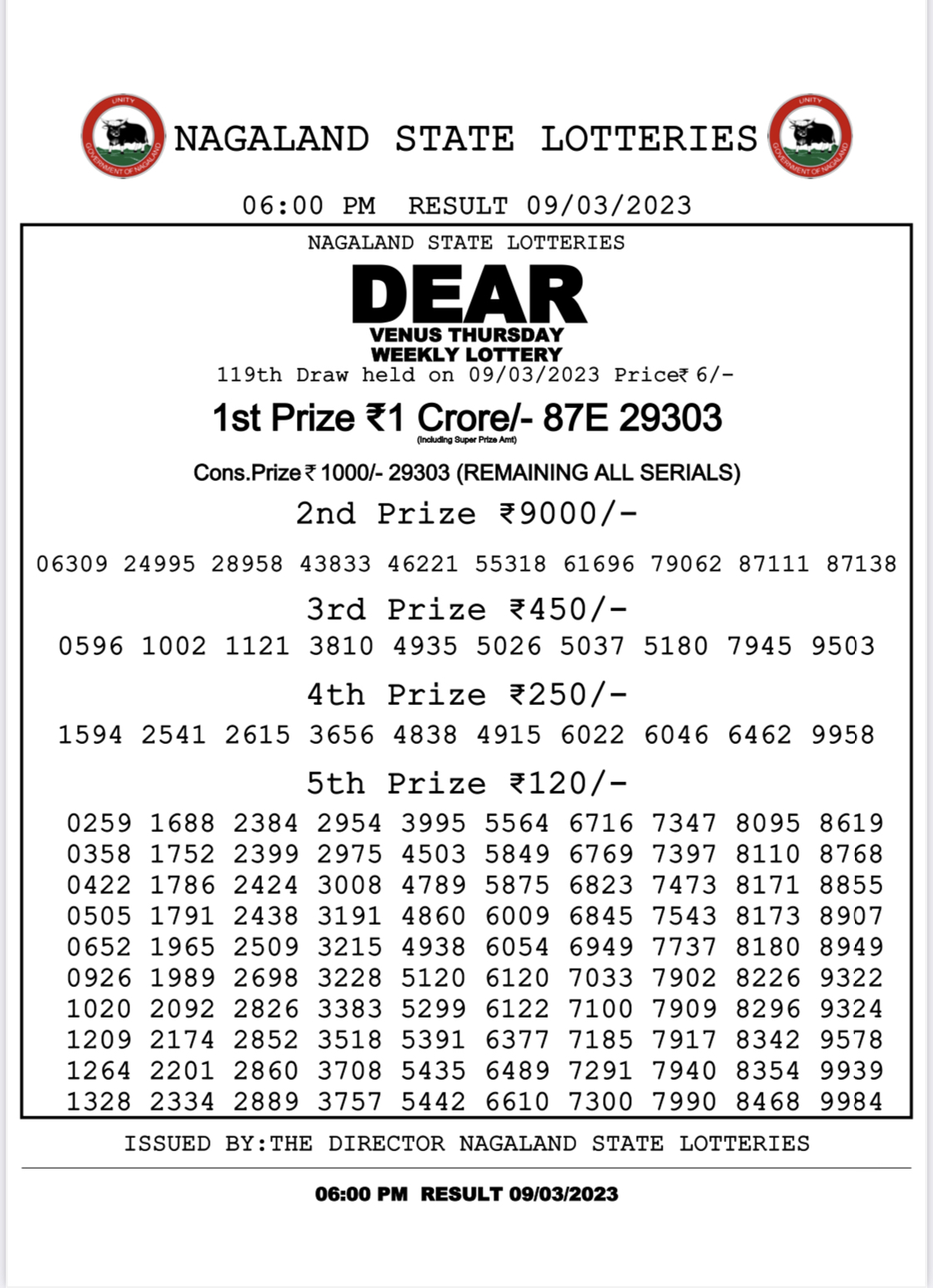 Dear daily lottery result 9 march 2023 6pm 09-03-2023 Leave a Comment on Dear daily lottery result 9 march 2023 6pm