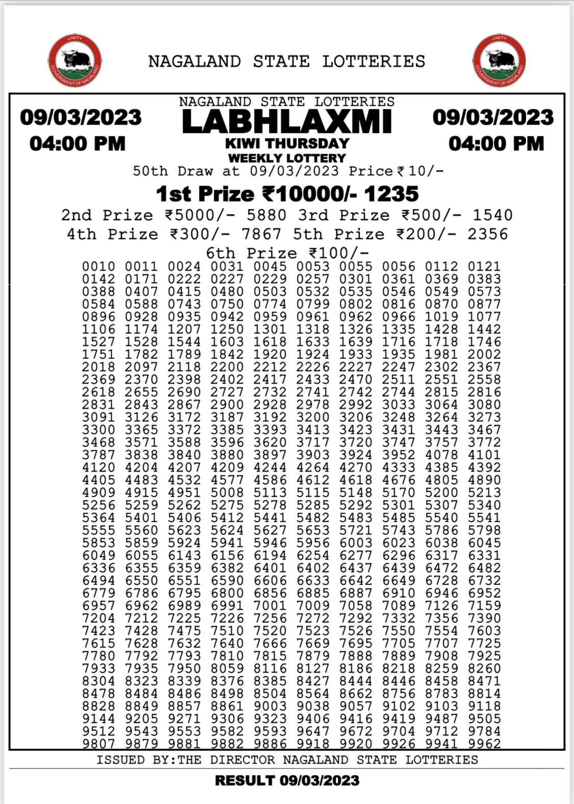 Dear daily lottery result 9march 2023 4pm 09-03-2023 Leave a Comment on Dear daily lottery result 9march 2023 4pm
