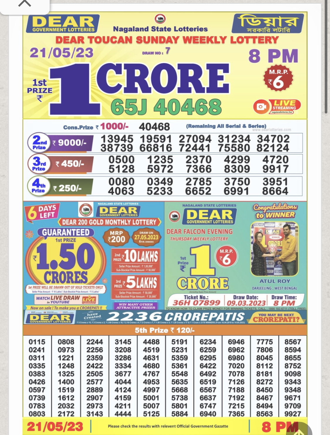 Dear daily lottery result of 21 may 2023 8 pm 21-05-2023 Leave a Comment on Dear daily lottery result of 21 may 2023 8 pm