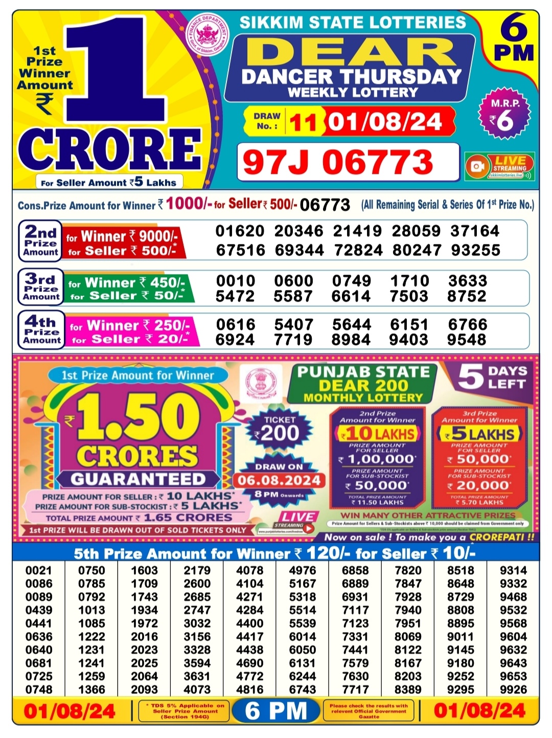 Dear dancer Thursday weekly lottery 6pm result 1/08/24 01-08-2024 Leave a Comment on Dear dancer Thursday weekly lottery 6pm result 1/08/24