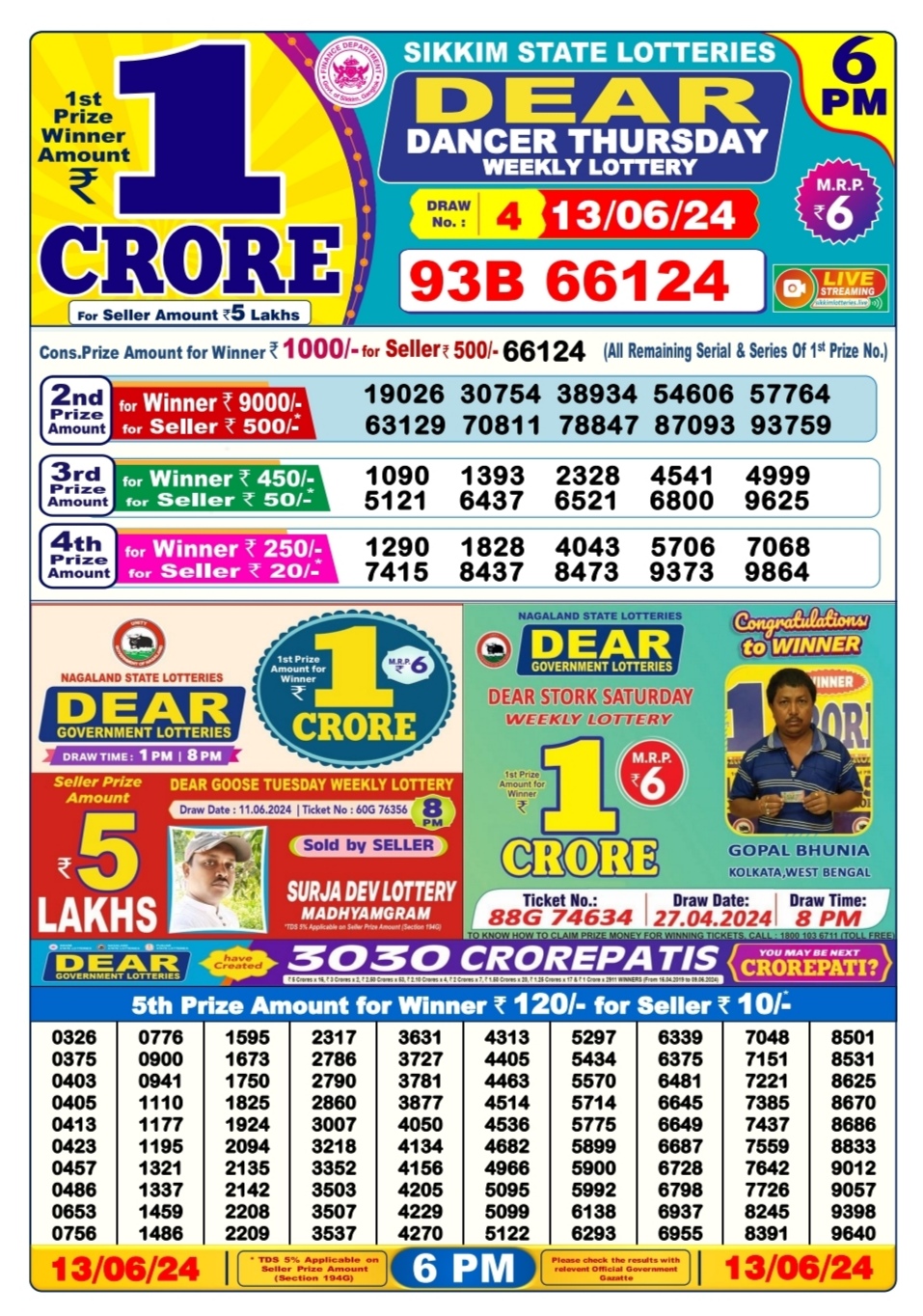 Dear dancer Thursday weekly lottery 6pm result 13/06/24 13-06-2024 Leave a Comment on Dear dancer Thursday weekly lottery 6pm result 13/06/24
