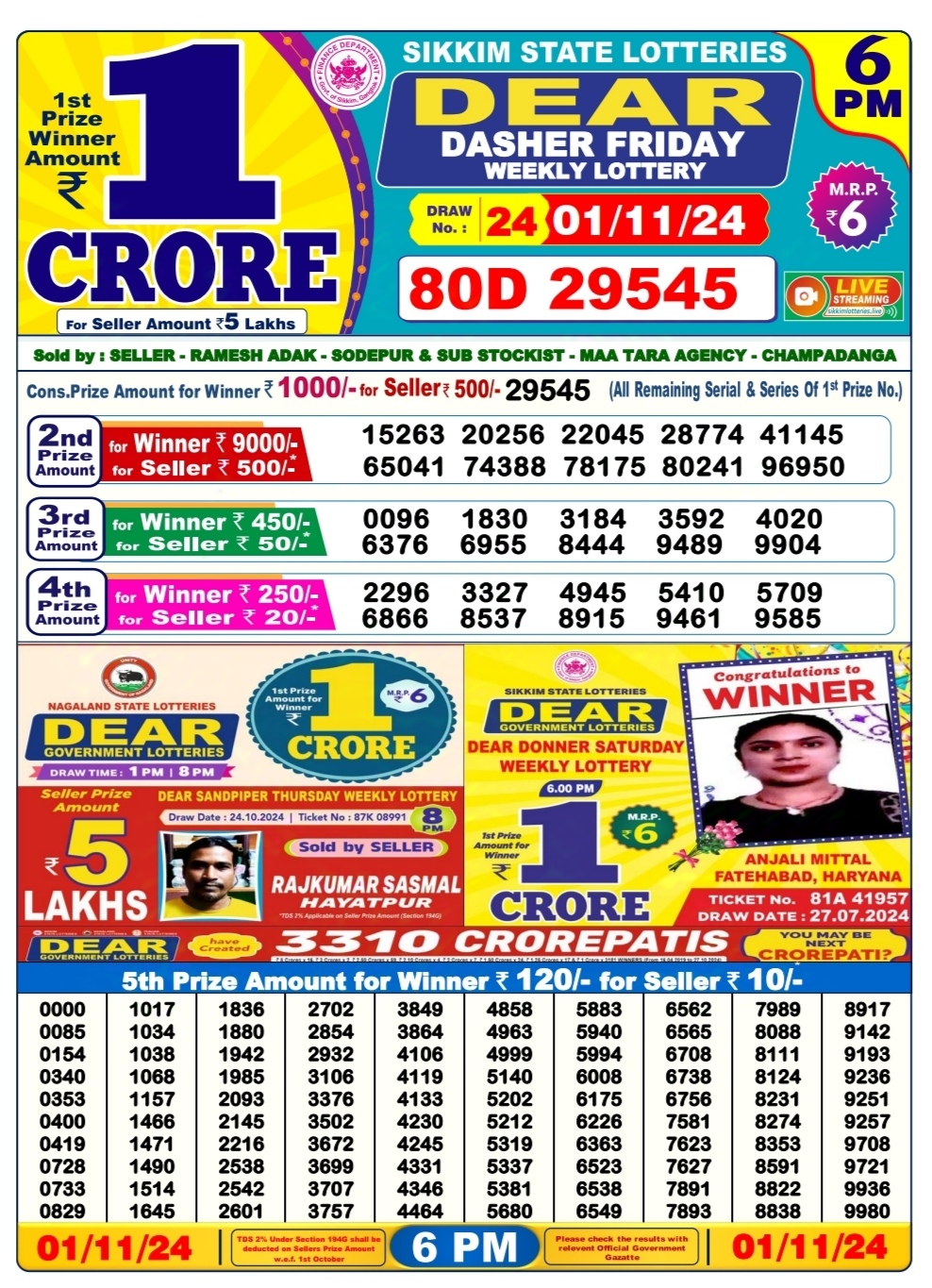 Dear dasher Friday weekly lottery 6pm result 1/11/24 01-11-2024 Leave a Comment on Dear dasher Friday weekly lottery 6pm result 1/11/24