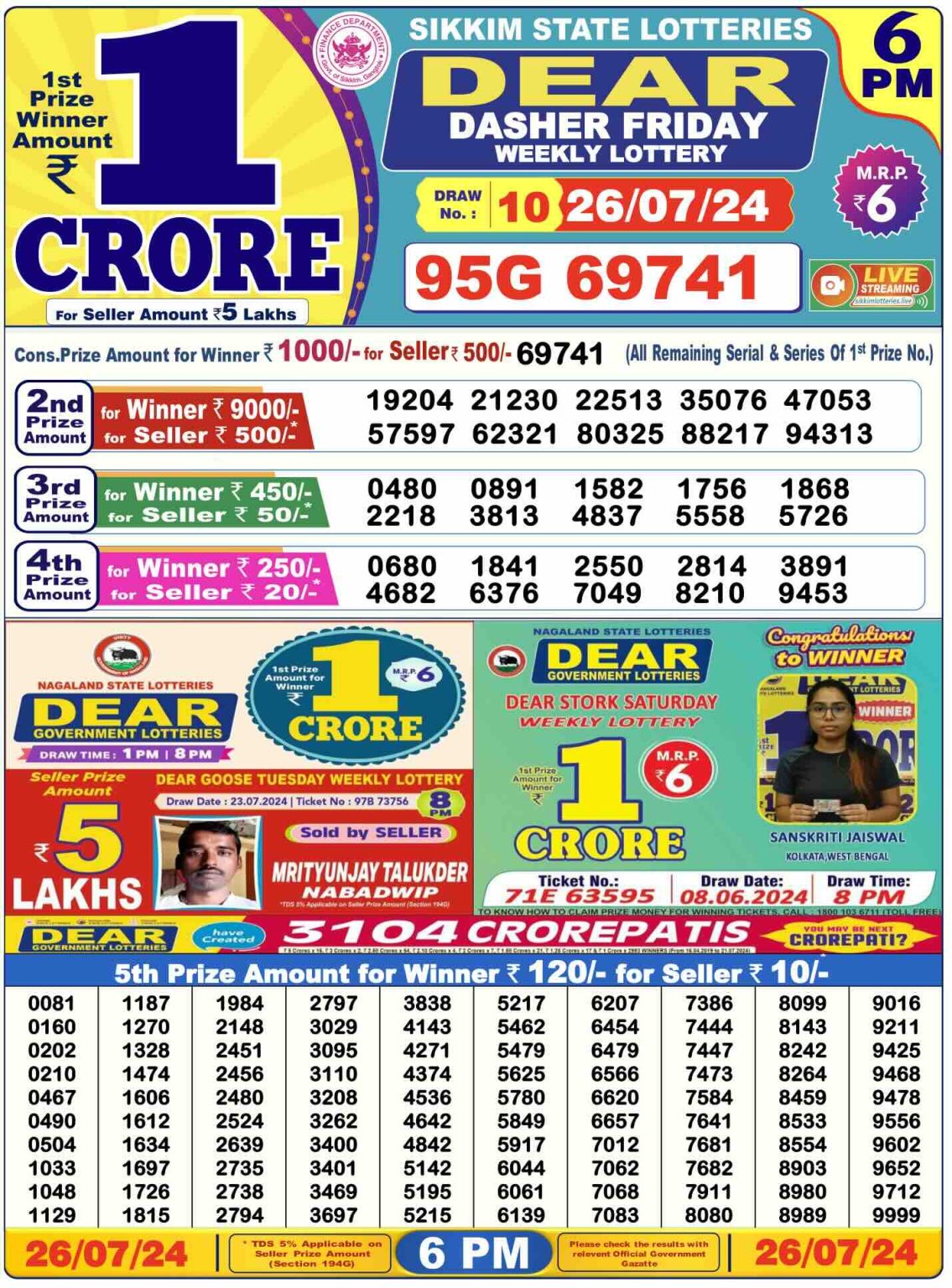 Dear dasher Friday weekly lottery 6pm result 26/07/24 26-07-2024 Leave a Comment on Dear dasher Friday weekly lottery 6pm result 26/07/24