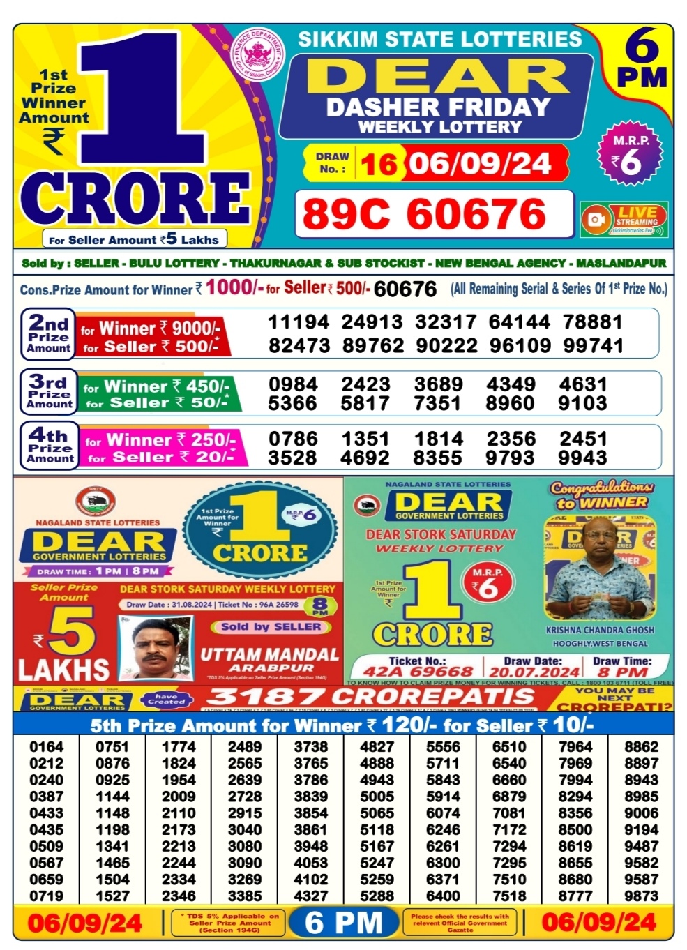 Dear dasher Friday weekly lottery 6pm result 6/09/24 06-09-2024 Leave a Comment on Dear dasher Friday weekly lottery 6pm result 6/09/24