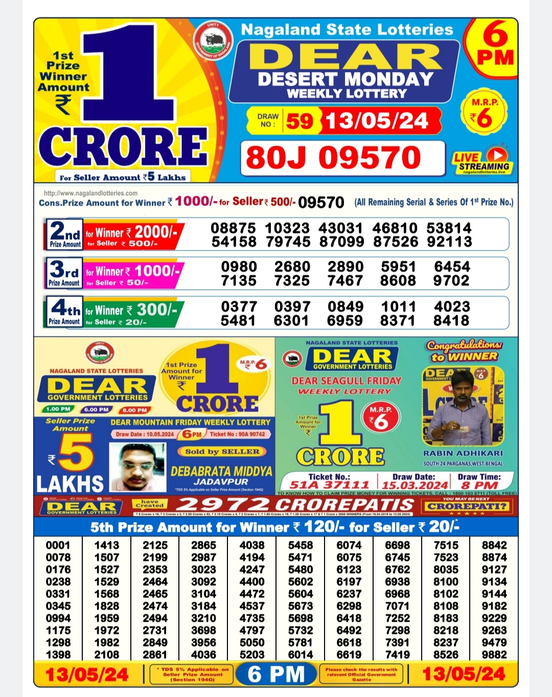Dear desert monday weekly lottery 6pm result 13/05/24 13-05-2024 Leave a Comment on Dear desert monday weekly lottery 6pm result 13/05/24