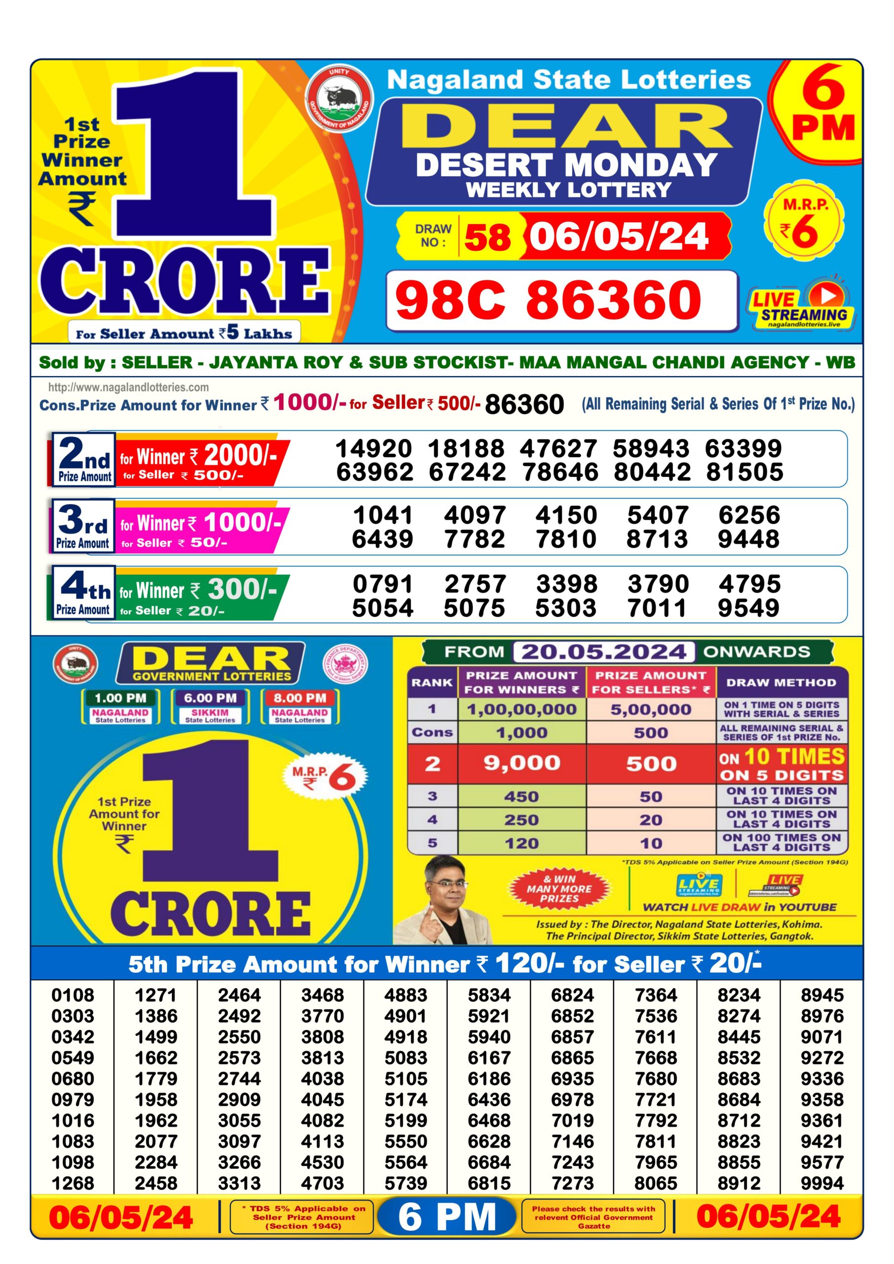 Dear desert monday weekly lottery 6pm result 6/05/24 06-05-2024 Leave a Comment on Dear desert monday weekly lottery 6pm result 6/05/24