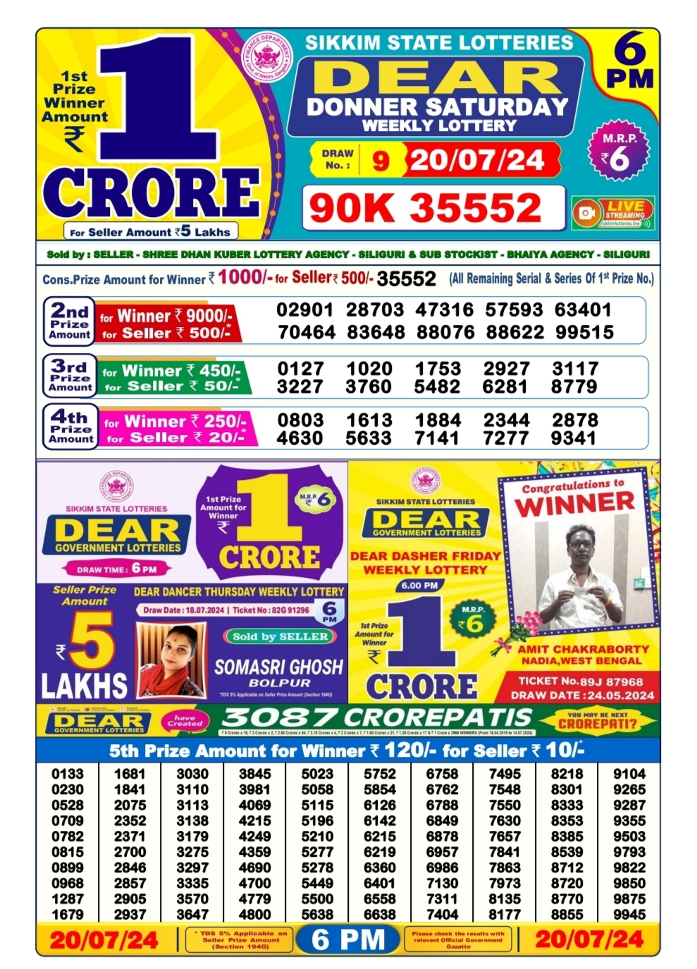 Dear donner saturday weekly lottery 6pm result 20/07/24 20-07-2024 Leave a Comment on Dear donner saturday weekly lottery 6pm result 20/07/24 Posted in Results