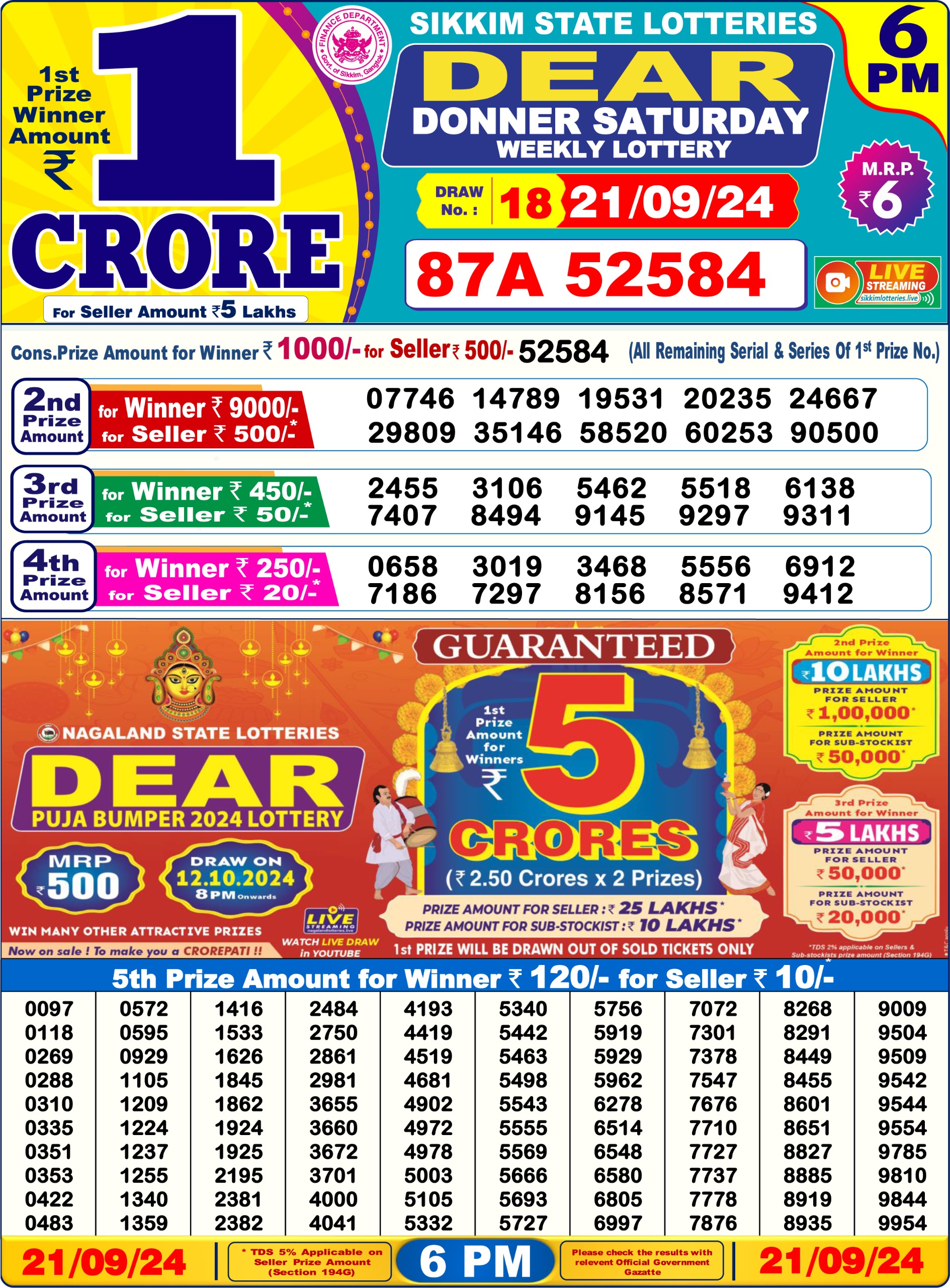 Dear donner saturday weekly lottery 6pm result 21/09/24 21-09-2024 Leave a Comment on Dear donner saturday weekly lottery 6pm result 21/09/24