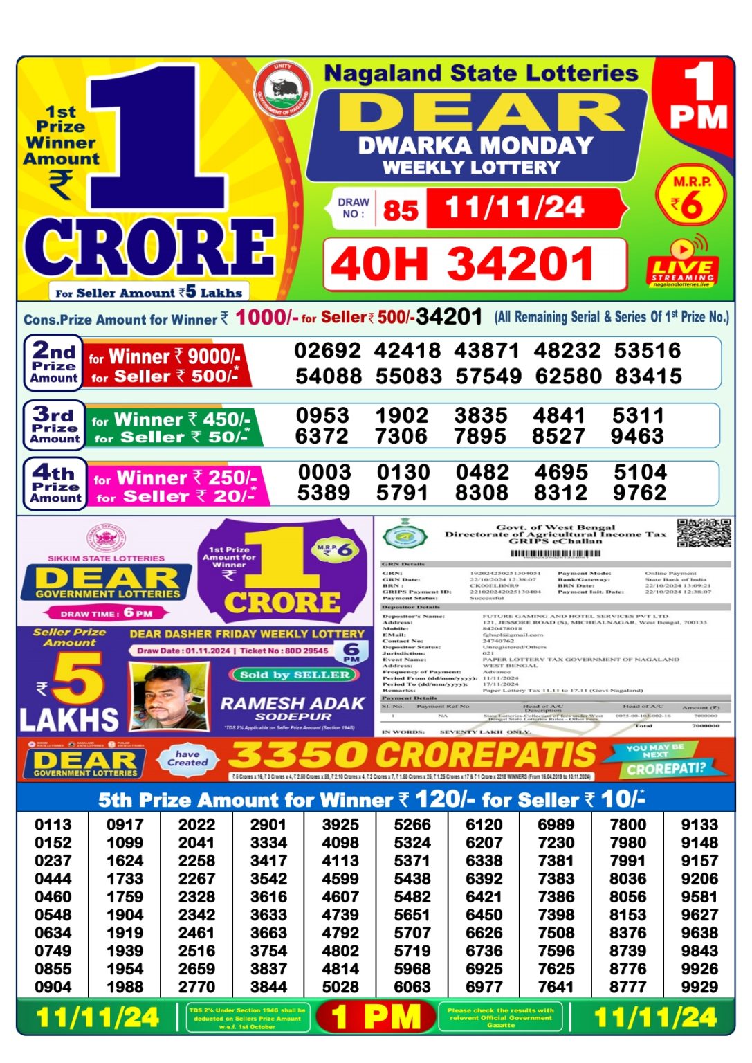 Dear dwarka Monday Weekly lottery 1pm result 11/11/24 11-11-2024 Leave a Comment on Dear dwarka Monday Weekly lottery 1pm result 11/11/24