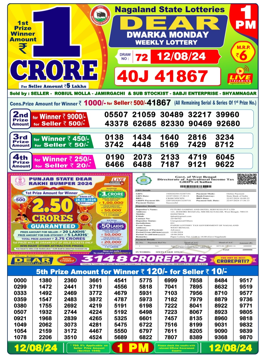 Dear dwarka monday weekly lottery 1pm result 12/08/24 12-08-2024 Leave a Comment on Dear dwarka monday weekly lottery 1pm result 12/08/24
