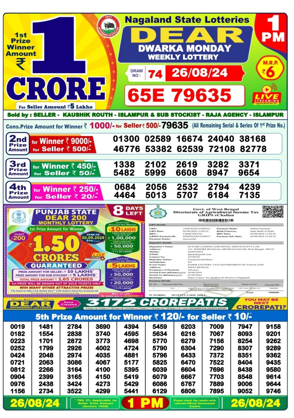 Dear dwarka monday weekly lottery 1pm result 26/08/24 26-08-2024 Leave a Comment on Dear dwarka monday weekly lottery 1pm result 26/08/24