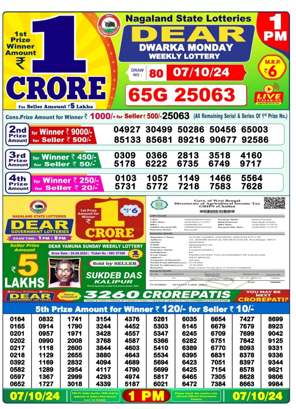 Dear dwarka monday weekly lottery 1pm result 7/10/24 07-10-2024 Leave a Comment on Dear dwarka monday weekly lottery 1pm result 7/10/24