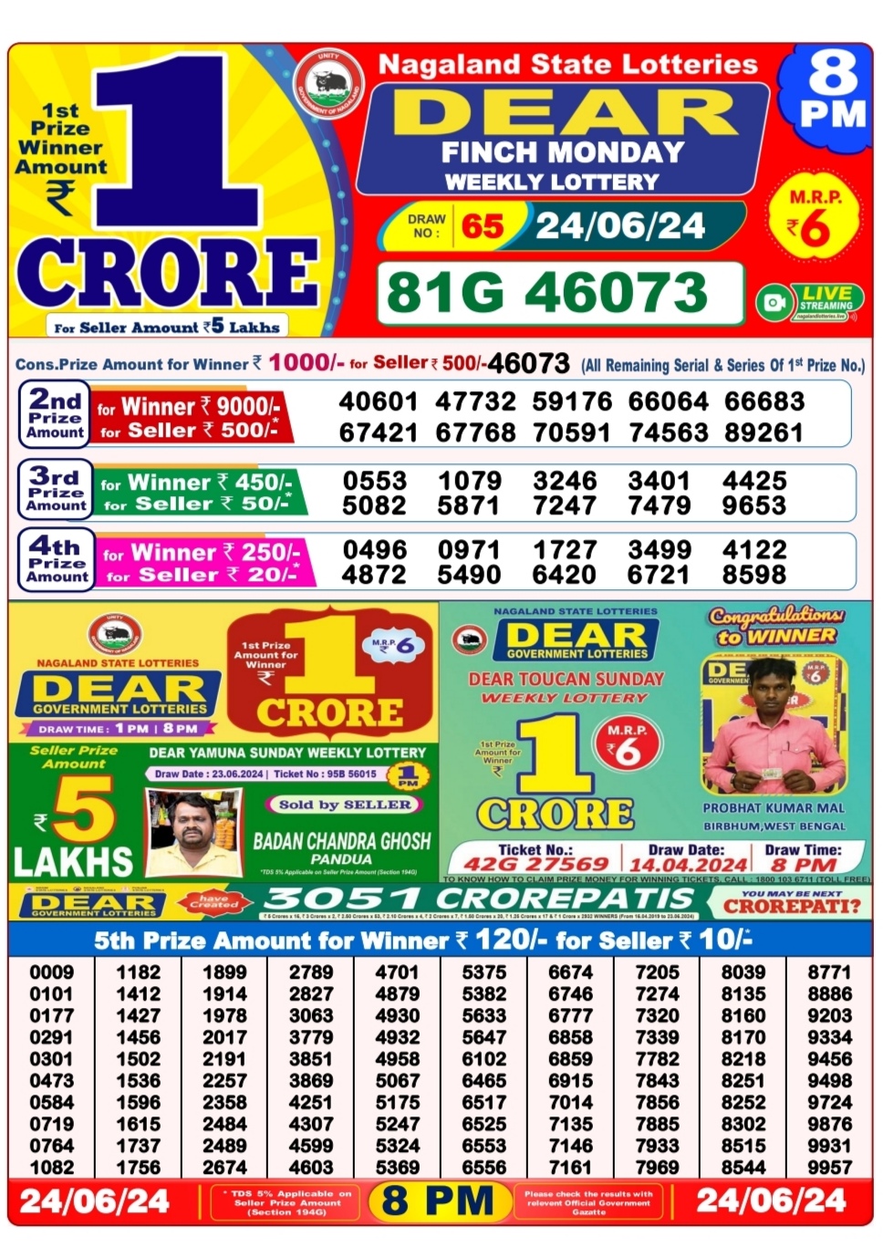 Dear finch Monday weekly lottery 8pm result 24/06/24 24-06-2024 Leave a Comment on Dear finch Monday weekly lottery 8pm result 24/06/24