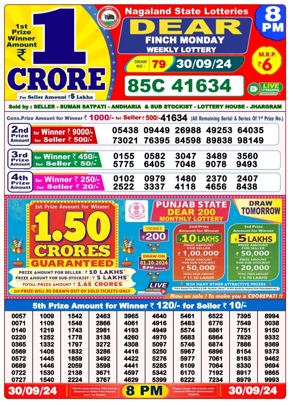 Dear Finch monday weekly lottery 8pm result 30/09/24 30-09-2024 Leave a Comment on Dear Finch monday weekly lottery 8pm result 30/09/24