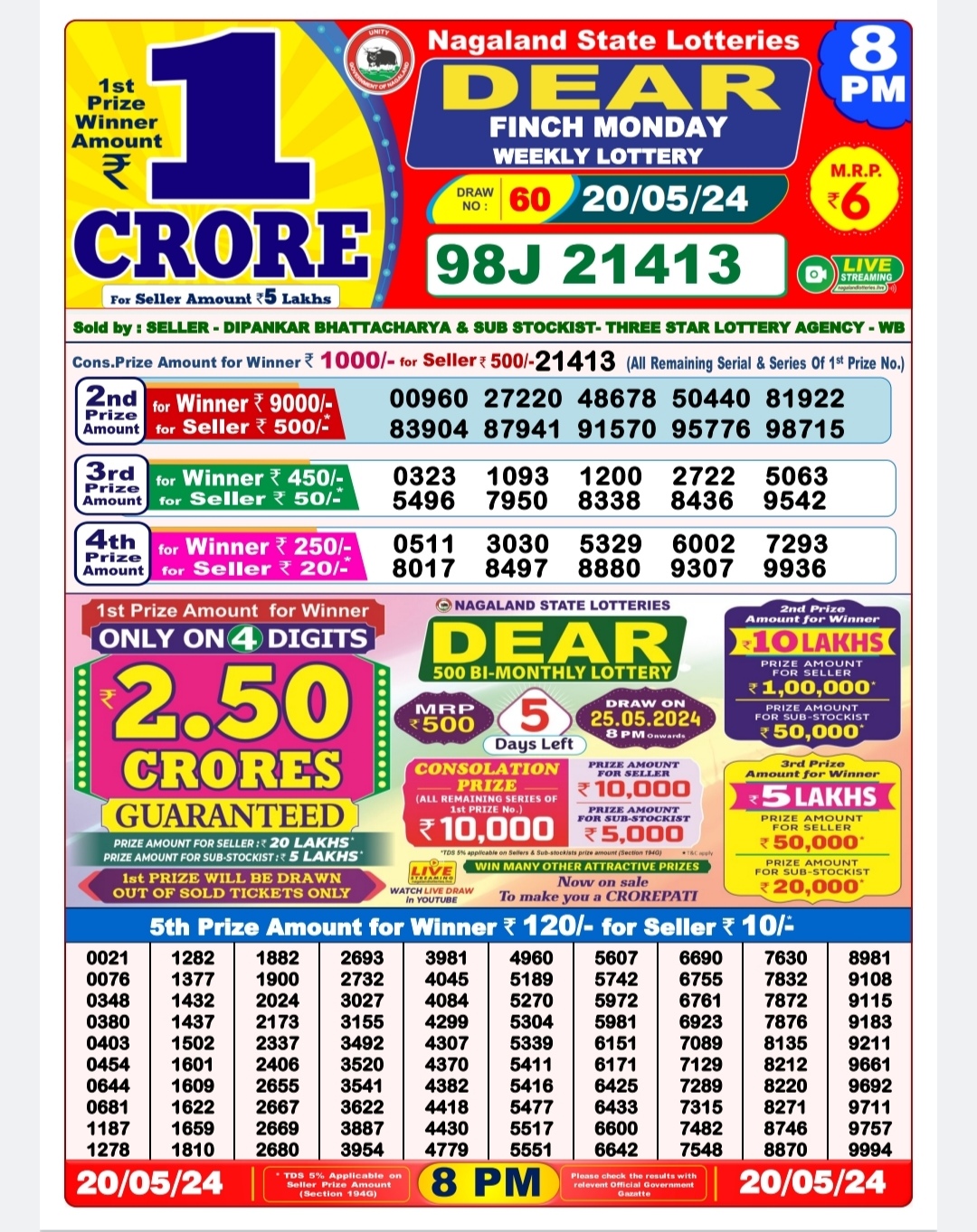 Dear Finch weekly lottery 8pm result 20/5/24 20-05-2024 Leave a Comment on Dear Finch weekly lottery 8pm result 20/5/24
