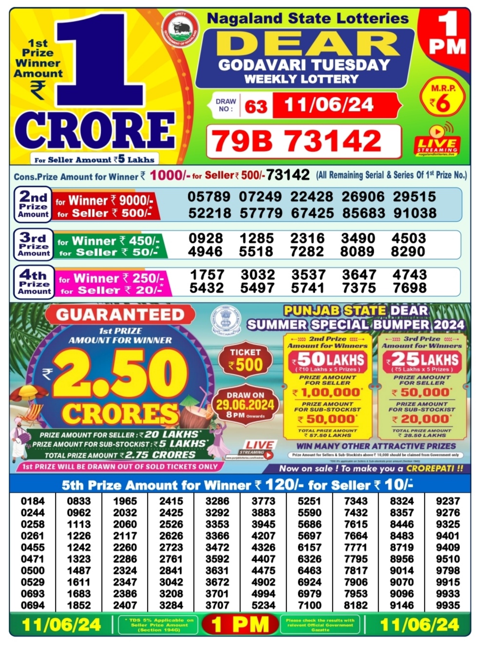 Dear godavari Tuesday Weekly lottery 1pm result 11/06/24 11-06-2024 Leave a Comment on Dear godavari Tuesday Weekly lottery 1pm result 11/06/24
