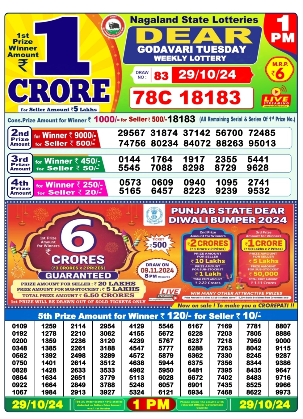 Dear godavari Tuesday Weekly lottery 1pm result 29/10/24 29-10-2024 Leave a Comment on Dear godavari Tuesday Weekly lottery 1pm result 29/10/24