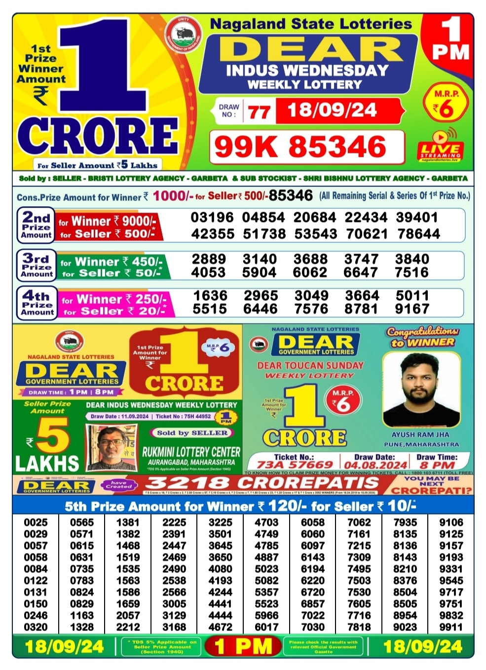 Dear indus Wednesday weekly lottery 1pm result 18/09/24 18-09-2024 Leave a Comment on Dear indus Wednesday weekly lottery 1pm result 18/09/24