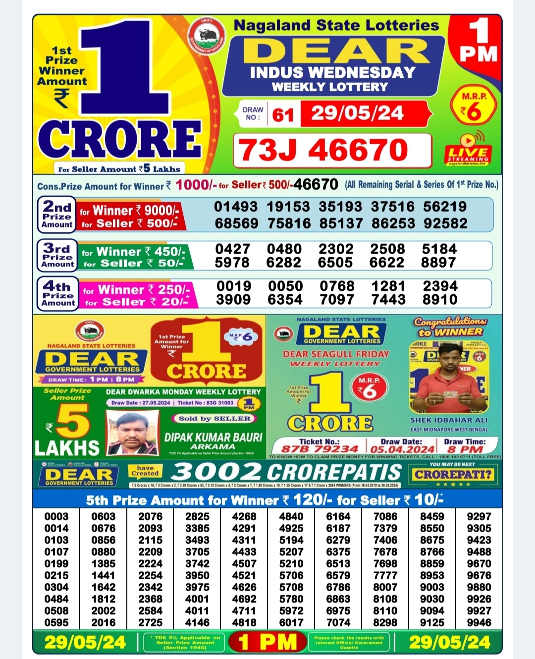 Dear indus Wednesday weekly lottery 1pm result 29/05/24 29-05-2024 Leave a Comment on Dear indus Wednesday weekly lottery 1pm result 29/05/24