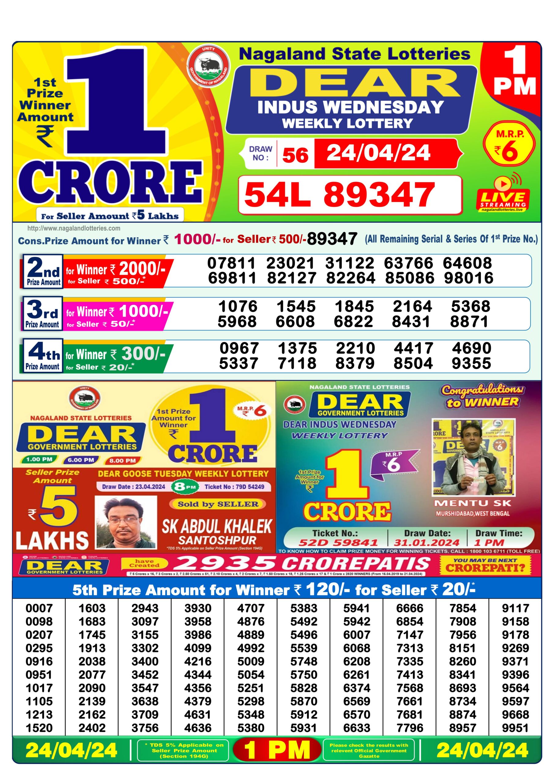 Dear indus Wednesday weekly lottery 1pm result 24/04/24 25-04-2024 Leave a Comment on Dear indus Wednesday weekly lottery 1pm result 24/04/24