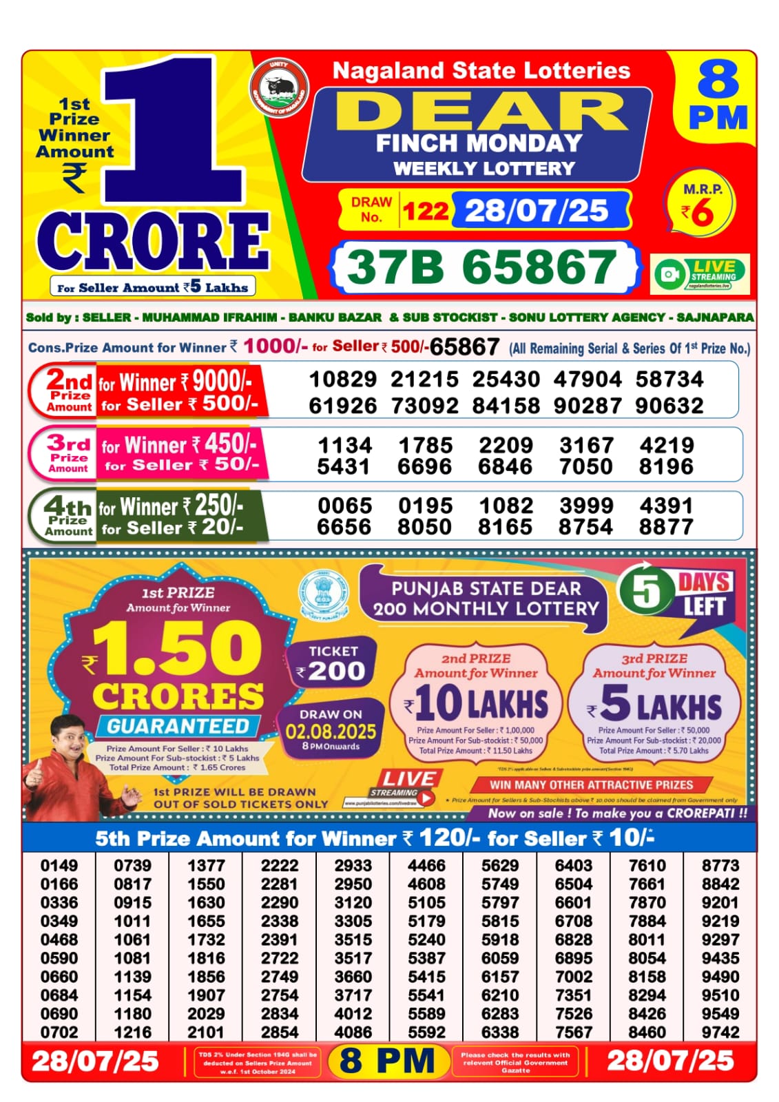 Dear Lottery Result 28.07.25 | 8 PM Live Lottery Sambad Result 28-07-2025 Leave a Comment on Dear Lottery Result 28.07.25 | 8 PM Live Lottery Sambad Result
