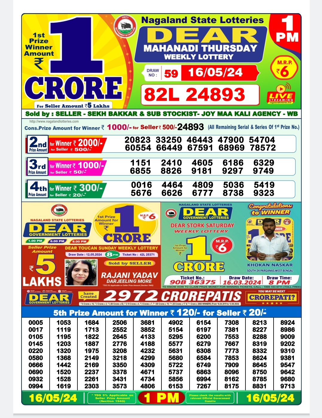 Dear mahanadi Thursday weekly lottery 1pm result 16/05/24 16-05-2024 Leave a Comment on Dear mahanadi Thursday weekly lottery 1pm result 16/05/24
