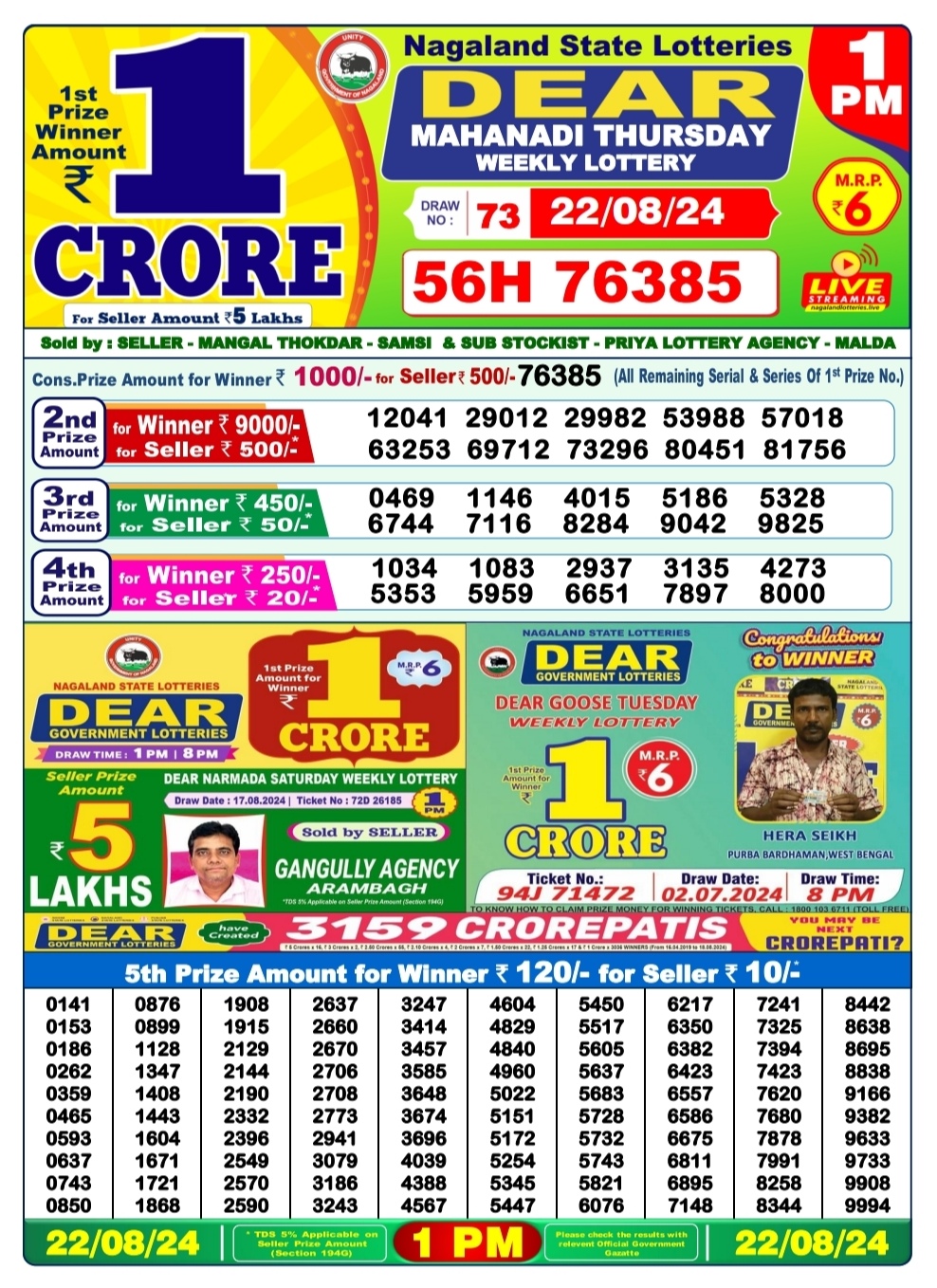 Dear mahanadi Thursday weekly lottery 1pm result 22/08/24 22-08-2024 Leave a Comment on Dear mahanadi Thursday weekly lottery 1pm result 22/08/24