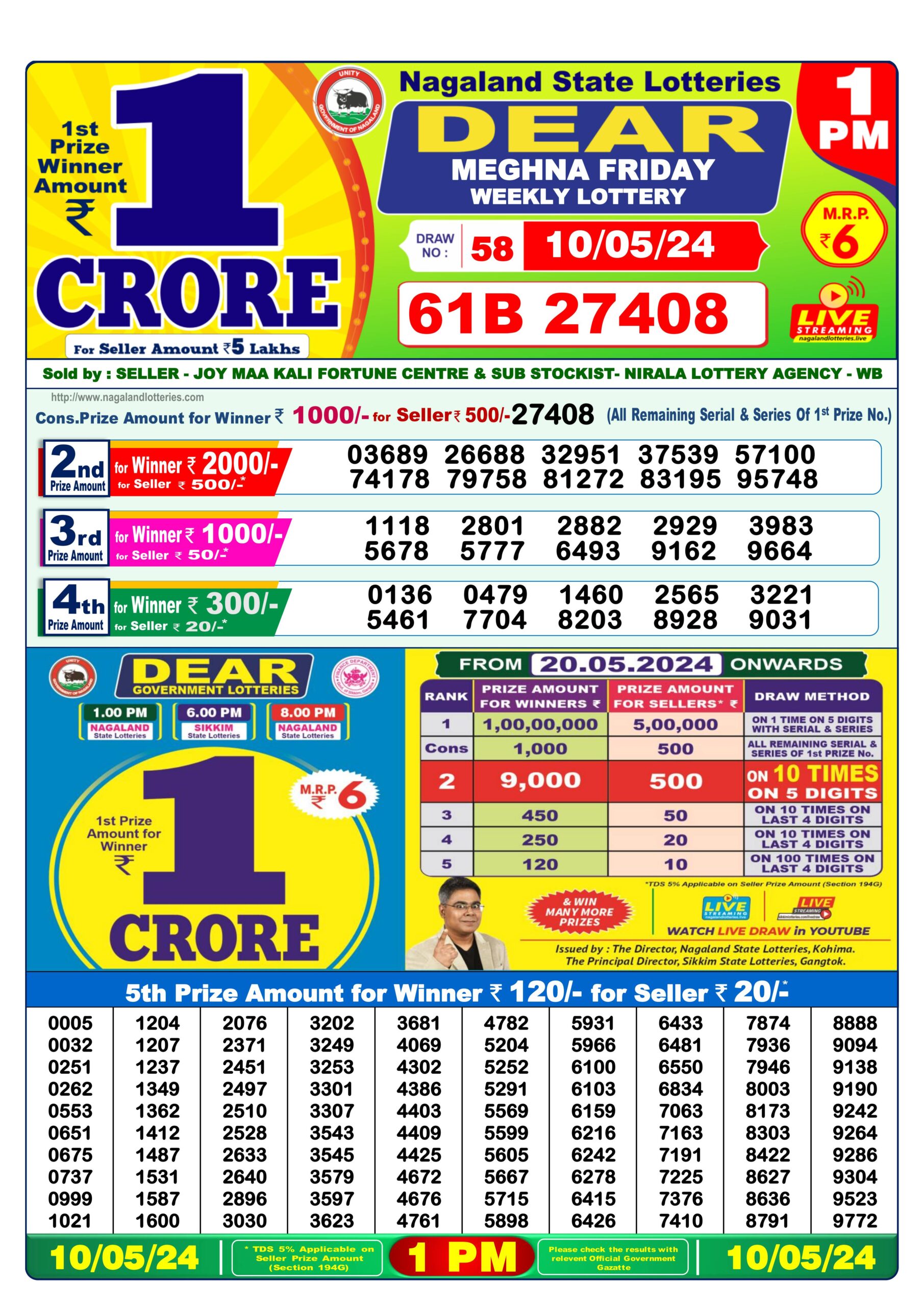 Dear meghna Friday weekly lottery 1pm result 10/05/24 10-05-2024 Leave a Comment on Dear meghna Friday weekly lottery 1pm result 10/05/24