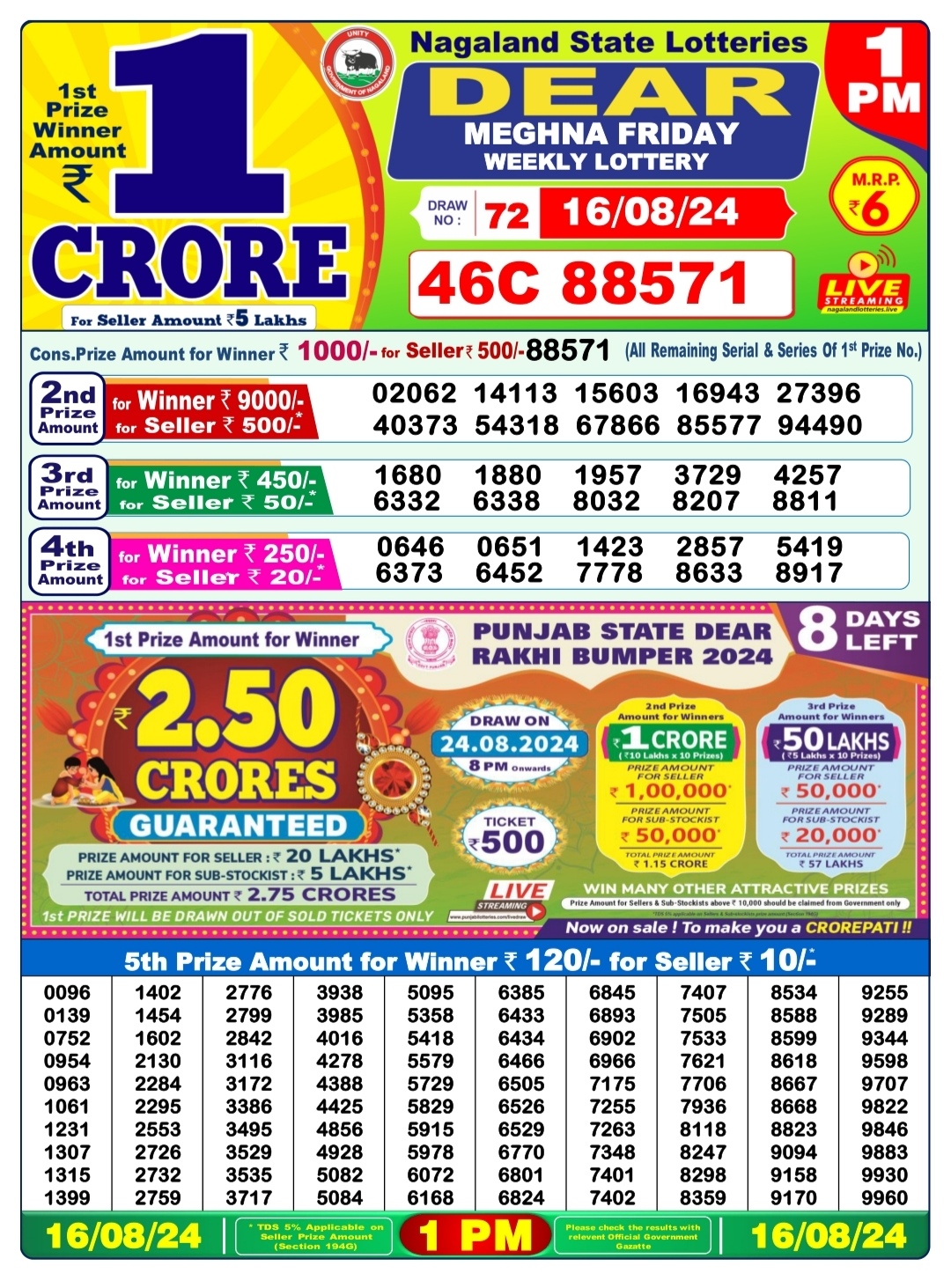 Dear meghna Friday weekly lottery 1pm result 16/08/24 16-08-2024 Leave a Comment on Dear meghna Friday weekly lottery 1pm result 16/08/24