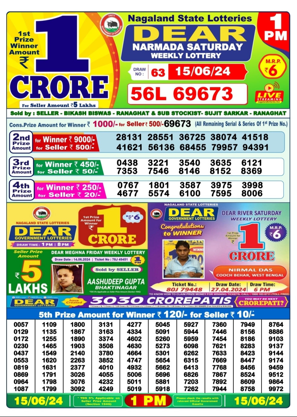 Dear narmada Saturday weekly lottery 1pm result 15/06/24 15-06-2024 Leave a Comment on Dear narmada Saturday weekly lottery 1pm result 15/06/24