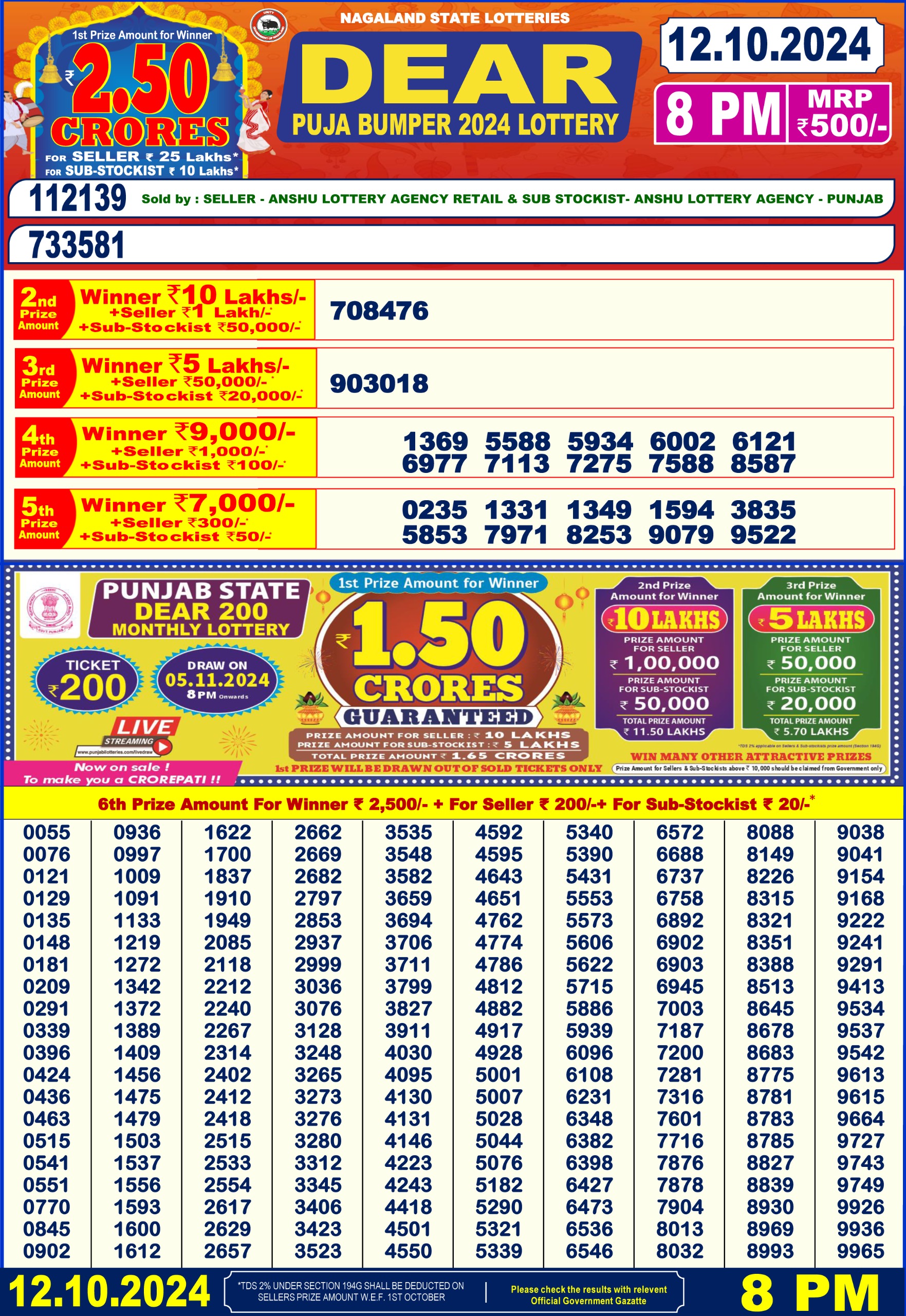 Dear puja bumper lottery 8pm result 12/10/2024 12-10-2024 Leave a Comment on Dear puja bumper lottery 8pm result 12/10/2024