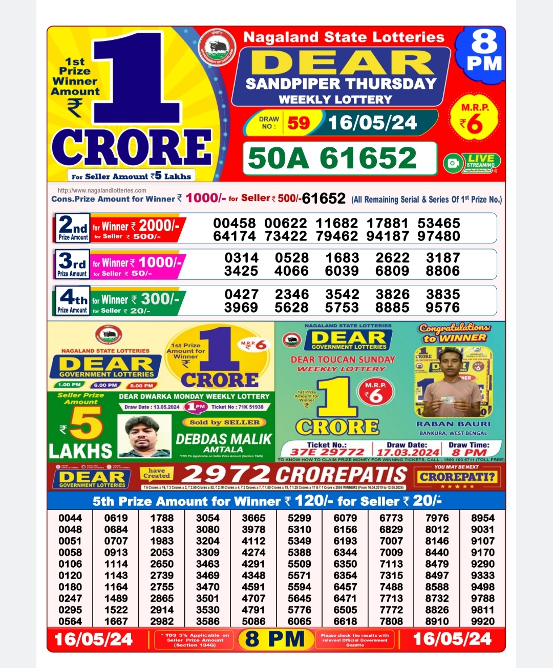 Dear sandpiper Thursday weekly lottery 8pm result 16/05/24 16-05-2024 Leave a Comment on Dear sandpiper Thursday weekly lottery 8pm result 16/05/24